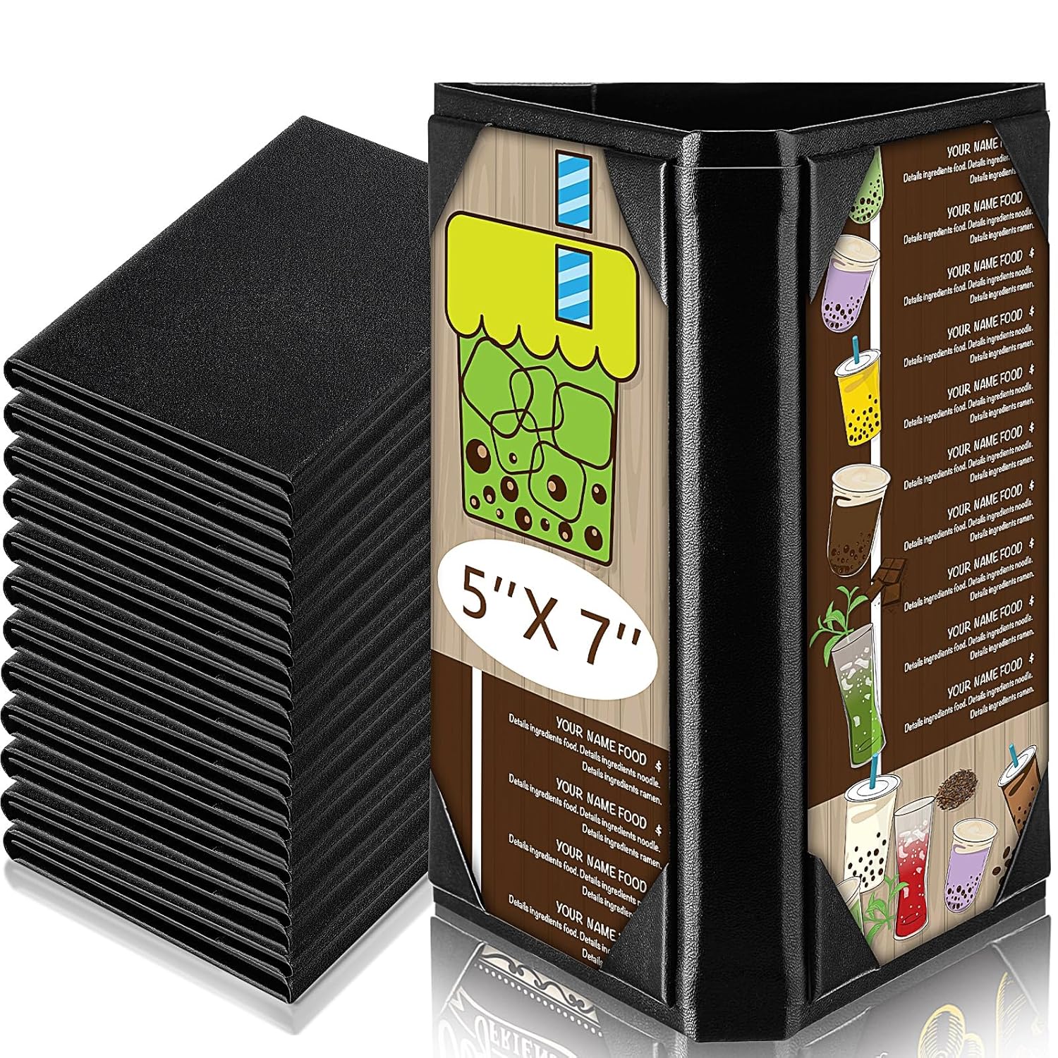 • Versatile Menu Holders: this package includes 12 pieces of 3 sided menu holders; Designed to suit showcase standard 5" x 7" menu sheets, which not only protect but also enhance your menu presentations; The classic black color adds a touch of elegance to your dining space, making your menus stand out and captivate customers