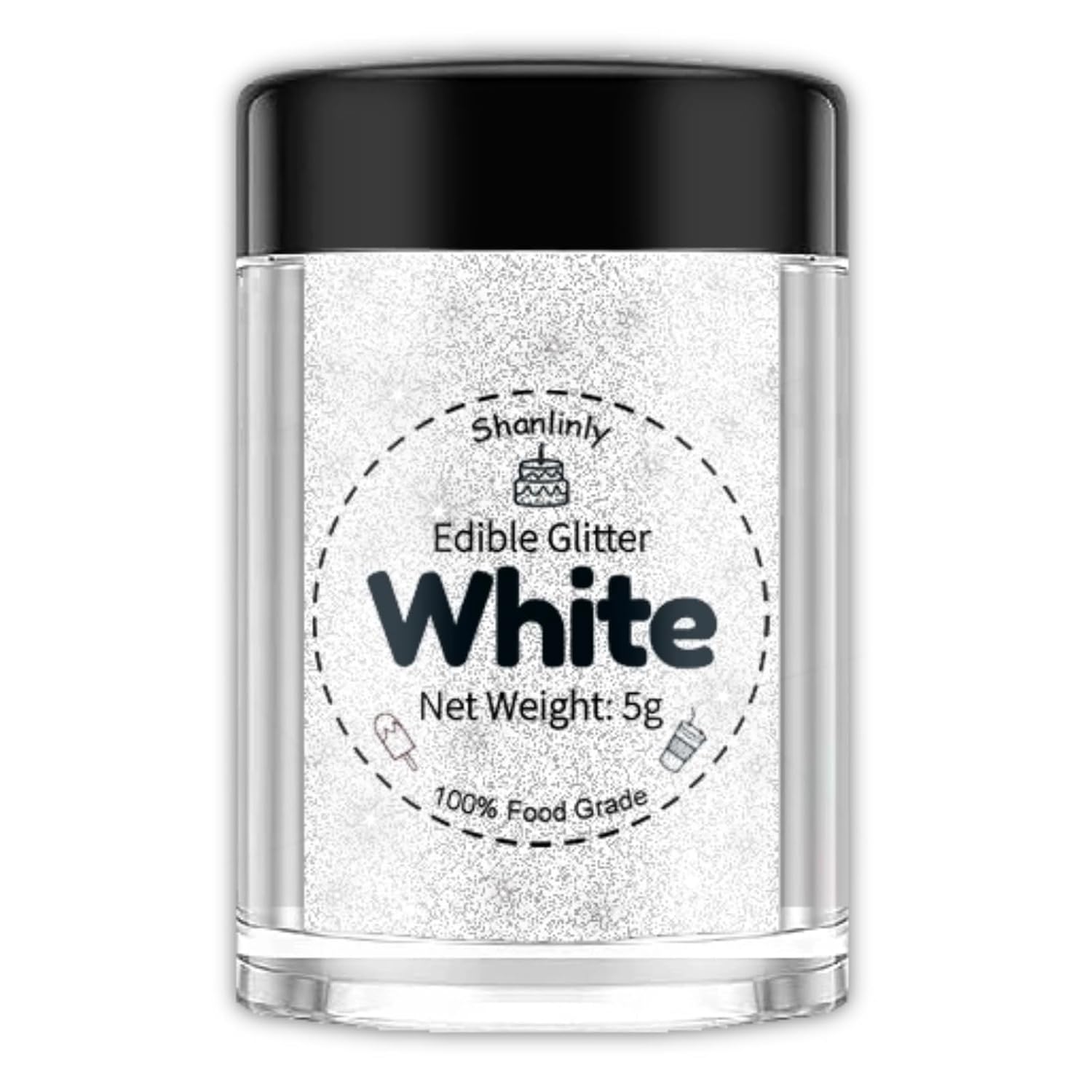 Shanlinly White Edible Glitter for Cakes Drinks - Food Grade 5g Shimmer Luster Glitter Dust Edible Glimmer Powders for Strawberries, Sprinkle on Sparkle, Chocolate, Cookie, Cupcake, Cocktail, Vegan