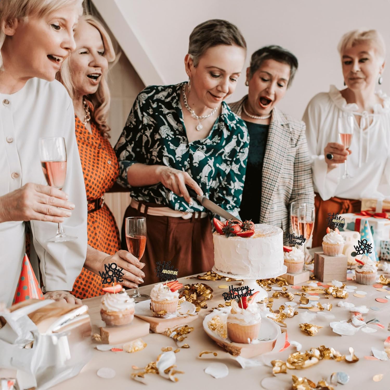 • 【NO Required】: 24Pcs Happy Retirement Cupcake Toppers can put in the cake directly! These Happy Retirement Cupcake Toppers saves your time and super easy to use. You can easily dress up your birthday theme cakes, yes! but don't stop there, put them into desserts, cookies, fruit pieces, appetizers, muffins and so much more!
