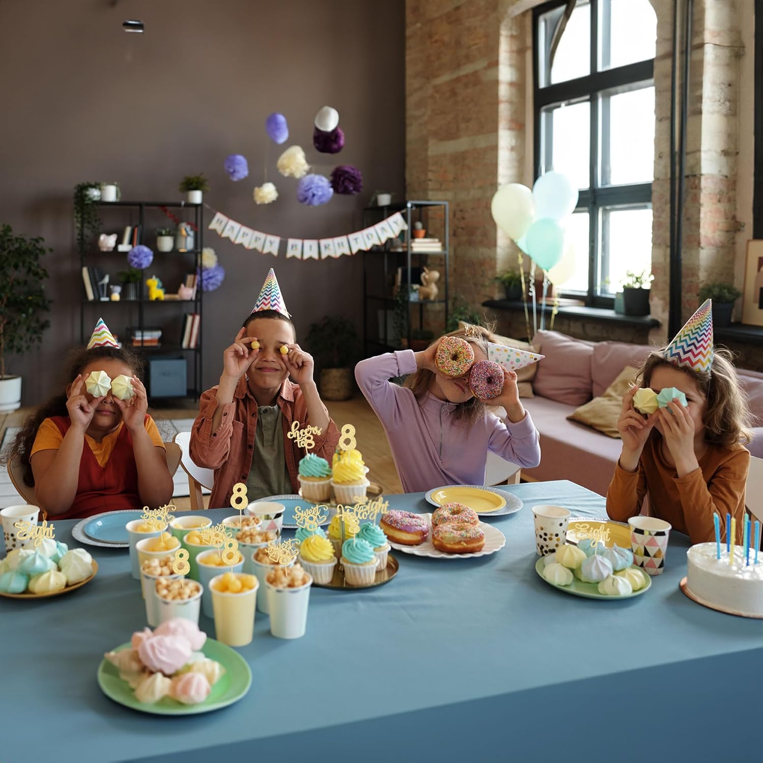 • -These Happy 8th Birthday Cupcake Toppers are so cute and good for happy 8th birthday theme party, cheers to 8 years theme party, 8 fabulous theme party, happy 8th birthday anniversary theme party cake decorations. They can make your cupcake more attractive and bring the fun to your party. You can also apply them for ice cream, fruits, cookies and other desserts.