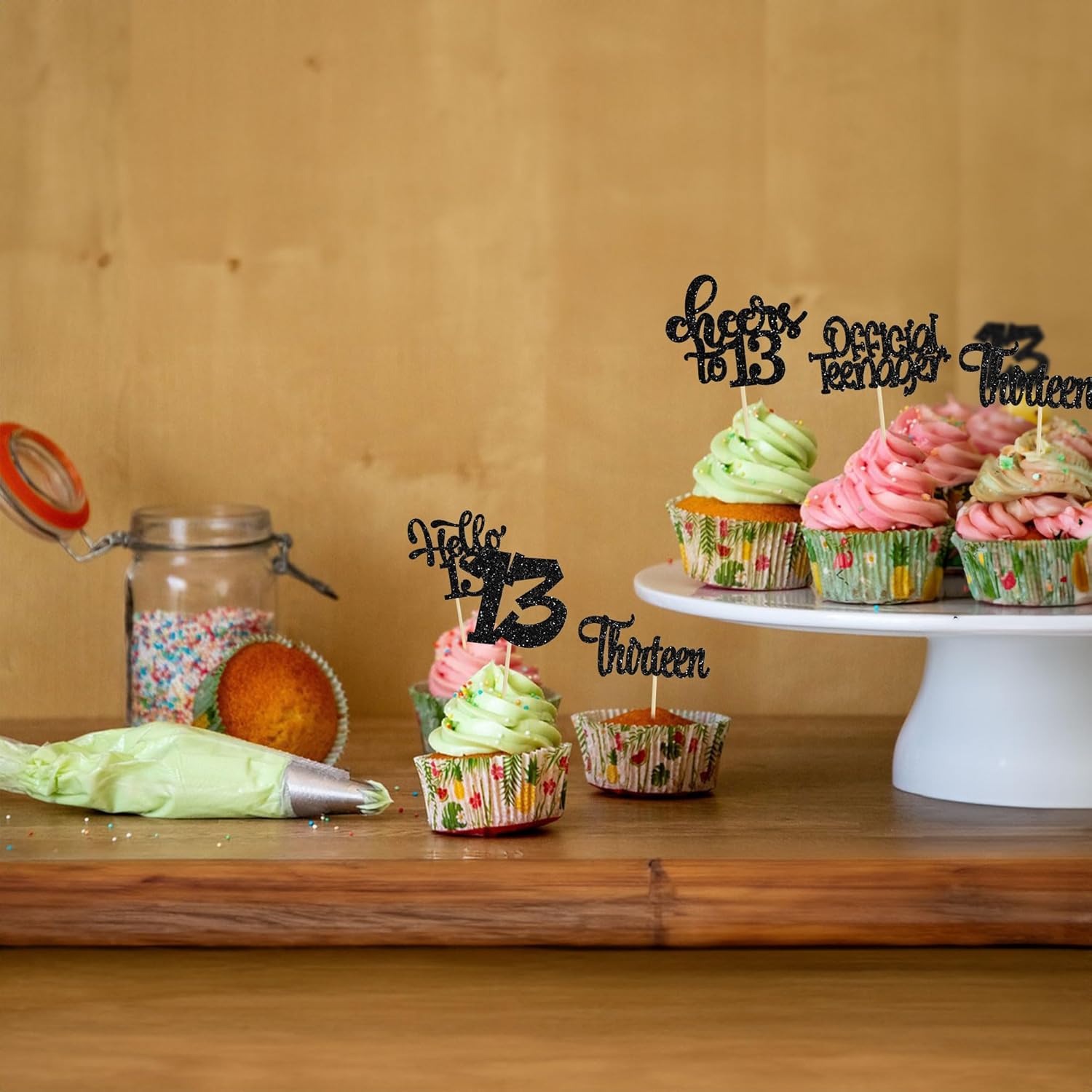 • -Package included: 24Pcs Happy 14th Birthday Cupcake Toppers. Comes with assembled, so you can insert into your cake directly, which make your cake more interesting.