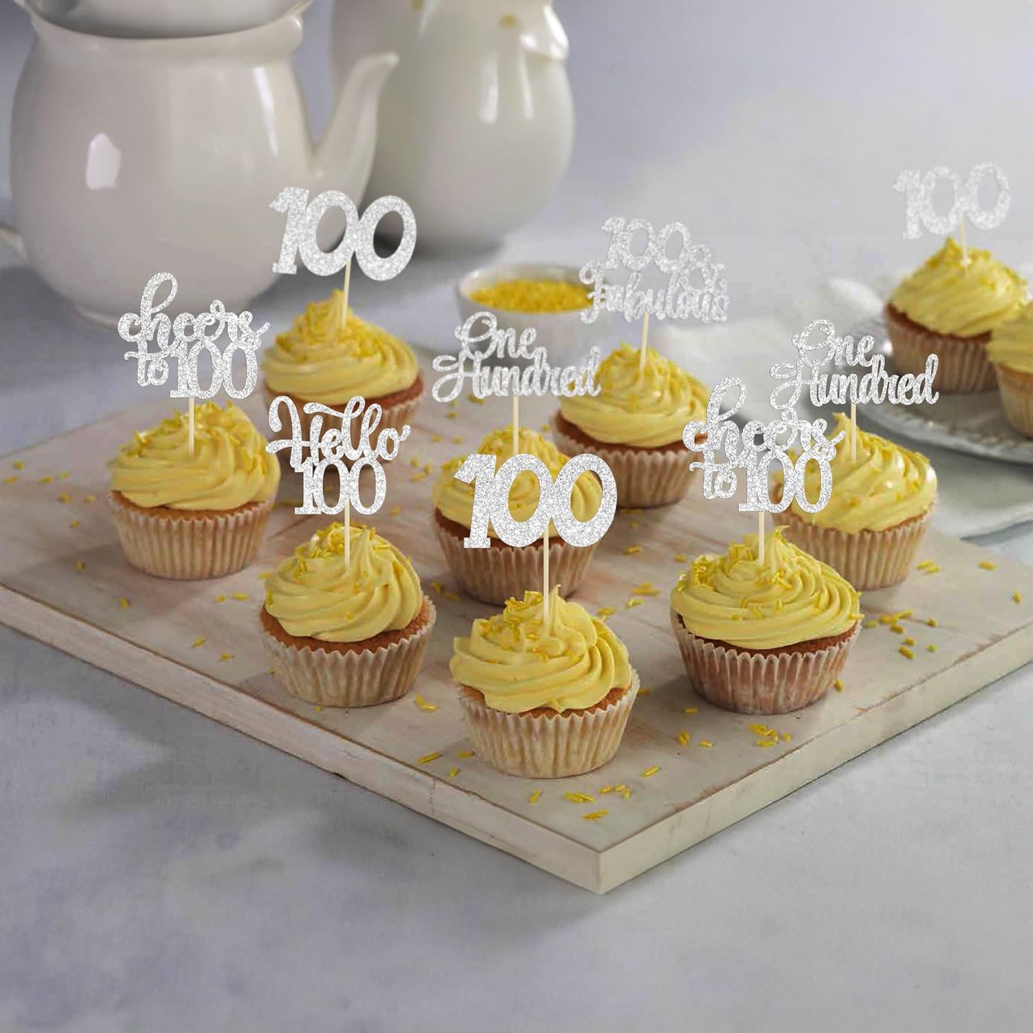 • -These Happy 100th Birthday Cupcake Toppers are so cute and good for happy 100th birthday theme party, cheers to 100 years theme party, 90 fabulous theme party, happy 100th birthday anniversary theme party cake decorations. They can make your cupcake more attractive and bring the fun to your party. You can also apply them for ice cream, fruits, cookies and other desserts.