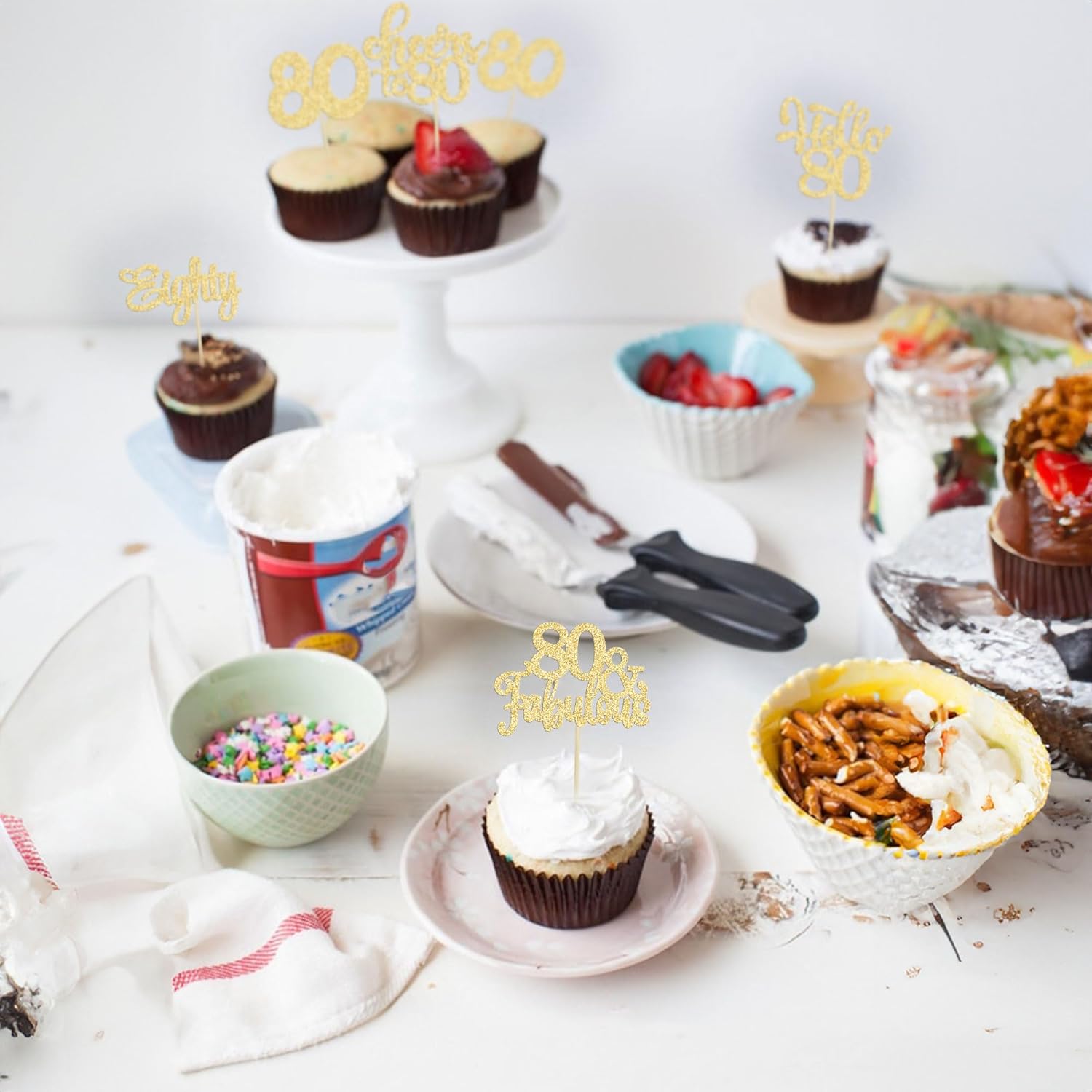• -These Happy 80th Birthday Cupcake Toppers are so cute and good for happy 80th birthday theme party, cheers to 80 years theme party, 80 fabulous theme party, happy 80th birthday anniversary theme party cake decorations. They can make your cupcake more attractive and bring the fun to your party. You can also apply them for ice cream, fruits, cookies and other desserts.