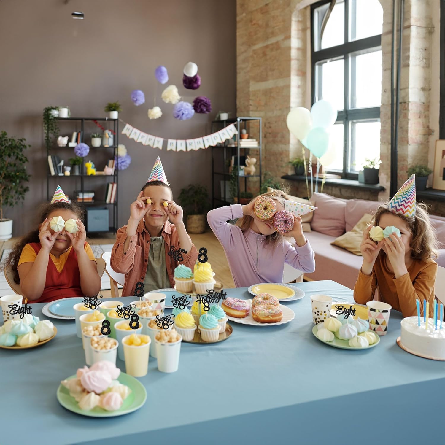 • -These Happy 8th Birthday Cupcake Toppers are so cute and good for happy 8th birthday theme party, cheers to 8 years theme party, 8 fabulous theme party, happy 8th birthday anniversary theme party cake decorations. They can make your cupcake more attractive and bring the fun to your party. You can also apply them for ice cream, fruits, cookies and other desserts.