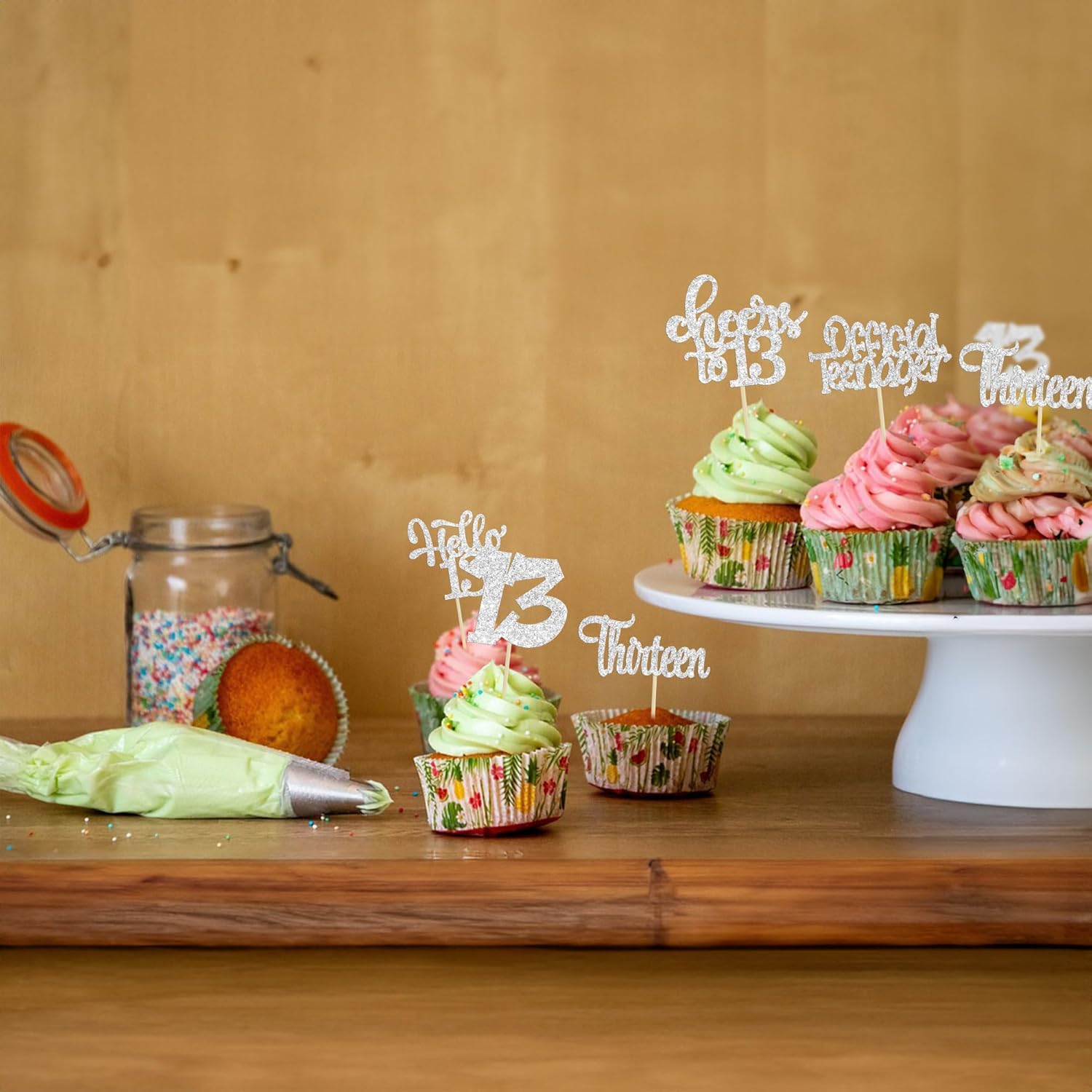 • -Package included: 24Pcs Happy 13th Birthday Cupcake Toppers. Comes with assembled, so you can insert into your cake directly, which make your cake more interesting.