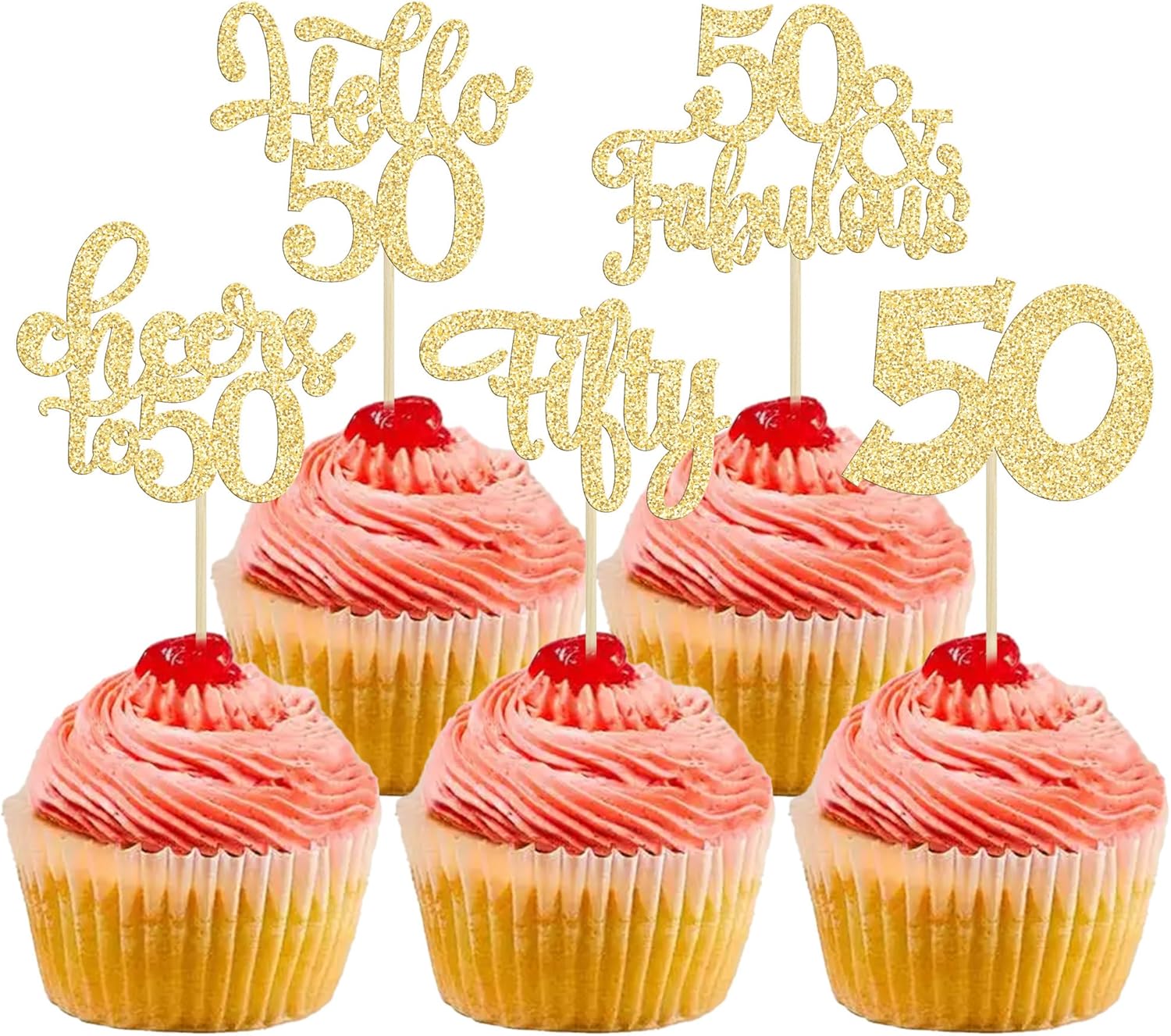 • -These Happy 50th Birthday Cupcake Toppers are so cute and good for happy 50th birthday theme party, cheers to 50 years theme party, 50 fabulous theme party, happy 50th birthday anniversary theme party cake decorations. They can make your cupcake more attractive and bring the fun to your party. You can also apply them for ice cream, fruits, cookies and other desserts.