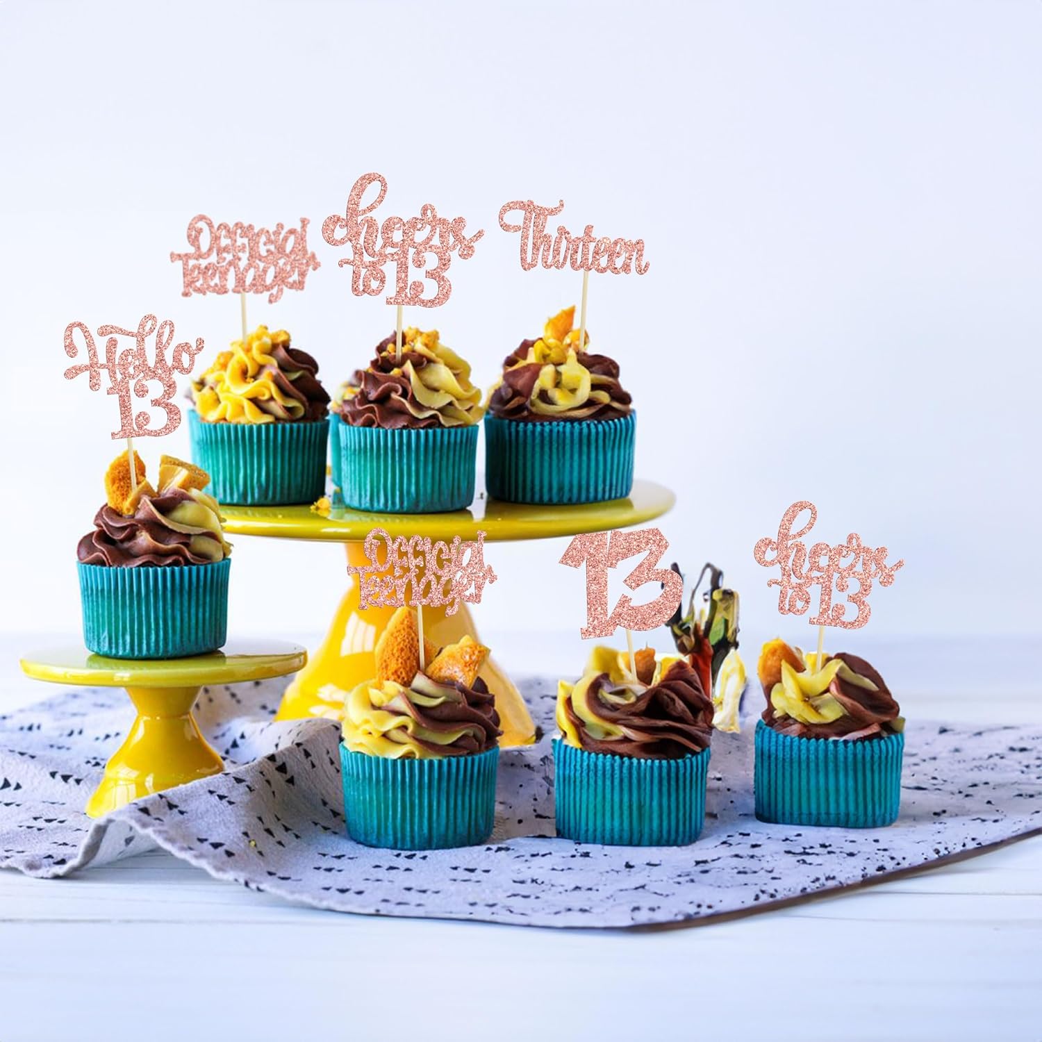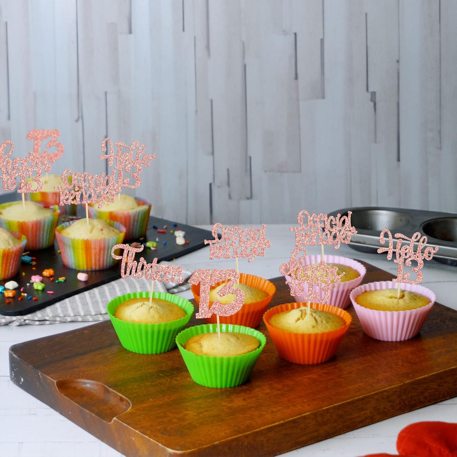 30Pcs 13th Birthday Cupcake Toppers Hello 13 Cupcake Picks Official Teenager Cheers to 13 Years Old Cake Decorations for 13th Birthday Anniversary Party Supplies Rose Gold Glitter