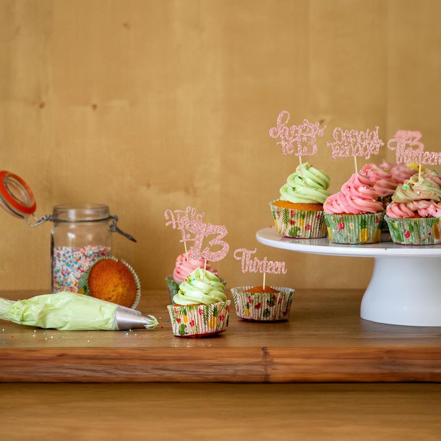• -Package included: 24Pcs Happy 13th Birthday Cupcake Toppers. Comes with assembled, so you can insert into your cake directly, which make your cake more interesting.
