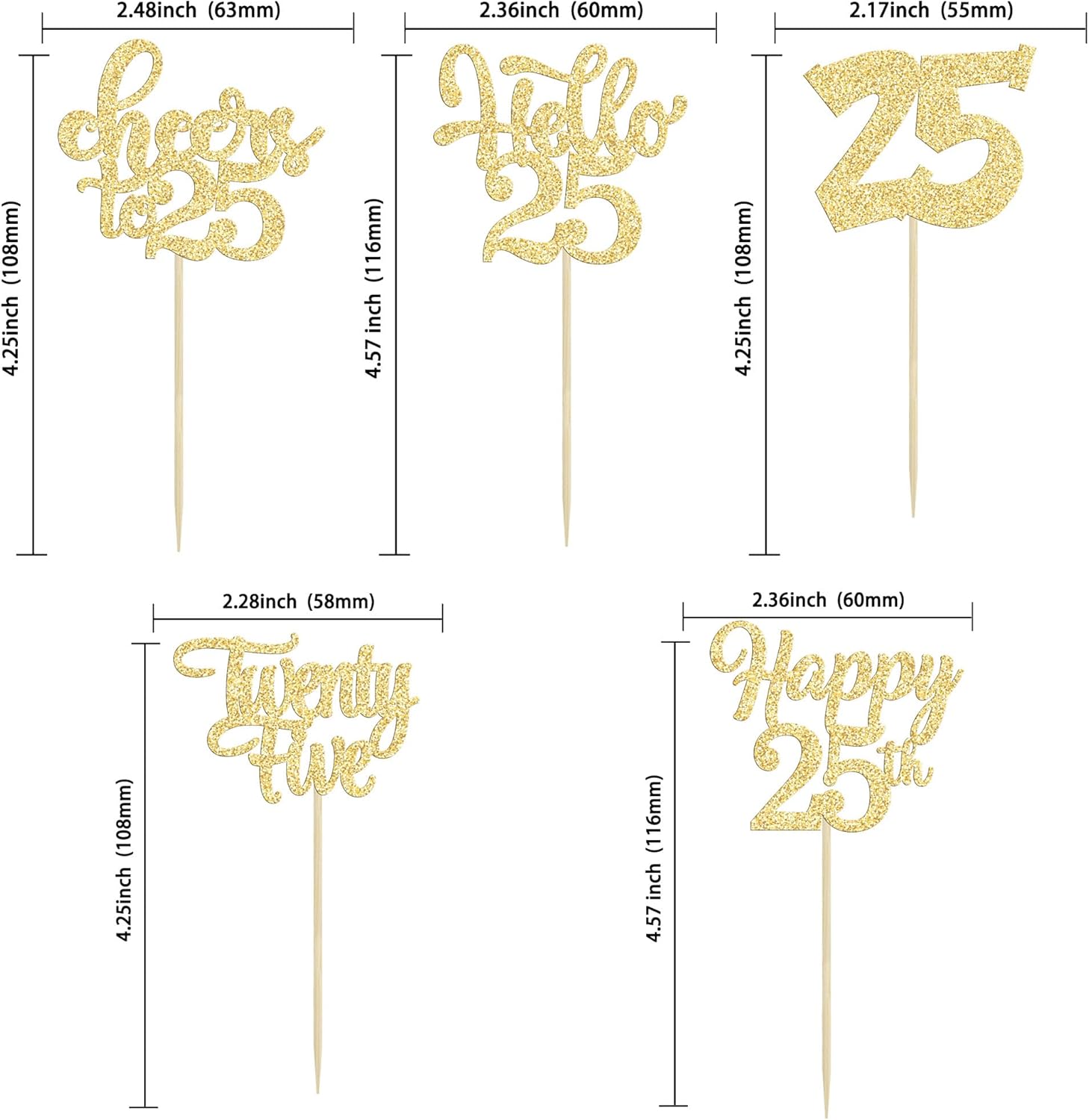 • -These Happy 25th Birthday Cupcake Toppers are so cute and good for happy 25th birthday theme party, cheers to 25 years theme party, 25 fabulous theme party, happy 25th birthday anniversary theme party cake decorations. They can make your cupcake more attractive and bring the fun to your party. You can also apply them for ice cream, fruits, cookies and other desserts.