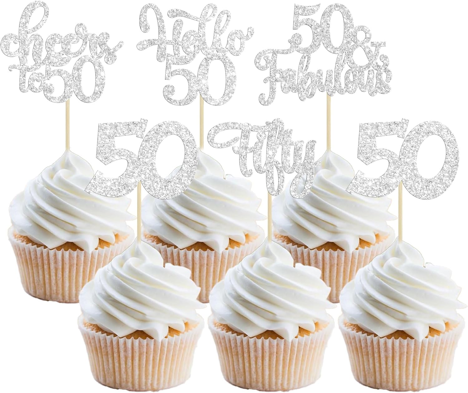• -These Happy 50th Birthday Cupcake Toppers are so cute and good for happy 50th birthday theme party, cheers to 50 years theme party, 50 fabulous theme party, happy 50th birthday anniversary theme party cake decorations. They can make your cupcake more attractive and bring the fun to your party. You can also apply them for ice cream, fruits, cookies and other desserts.