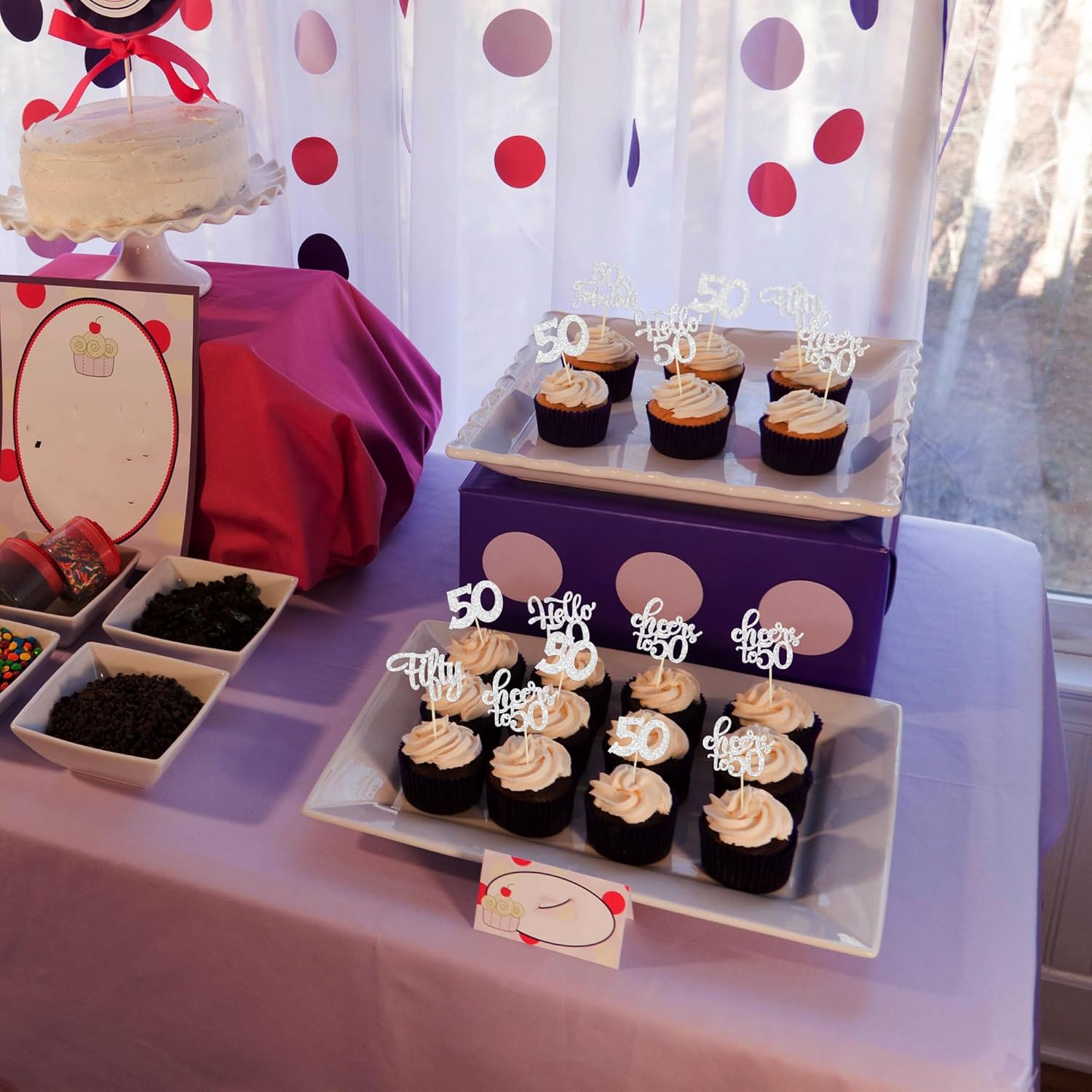 30Pcs Happy 50th Birthday Cupcake Toppers Silver Glitter Fifty Cheers to 50 Years Old Birthday Cupcake Picks for 50th Birthday Anniversary Party Cake Decorations Supplies