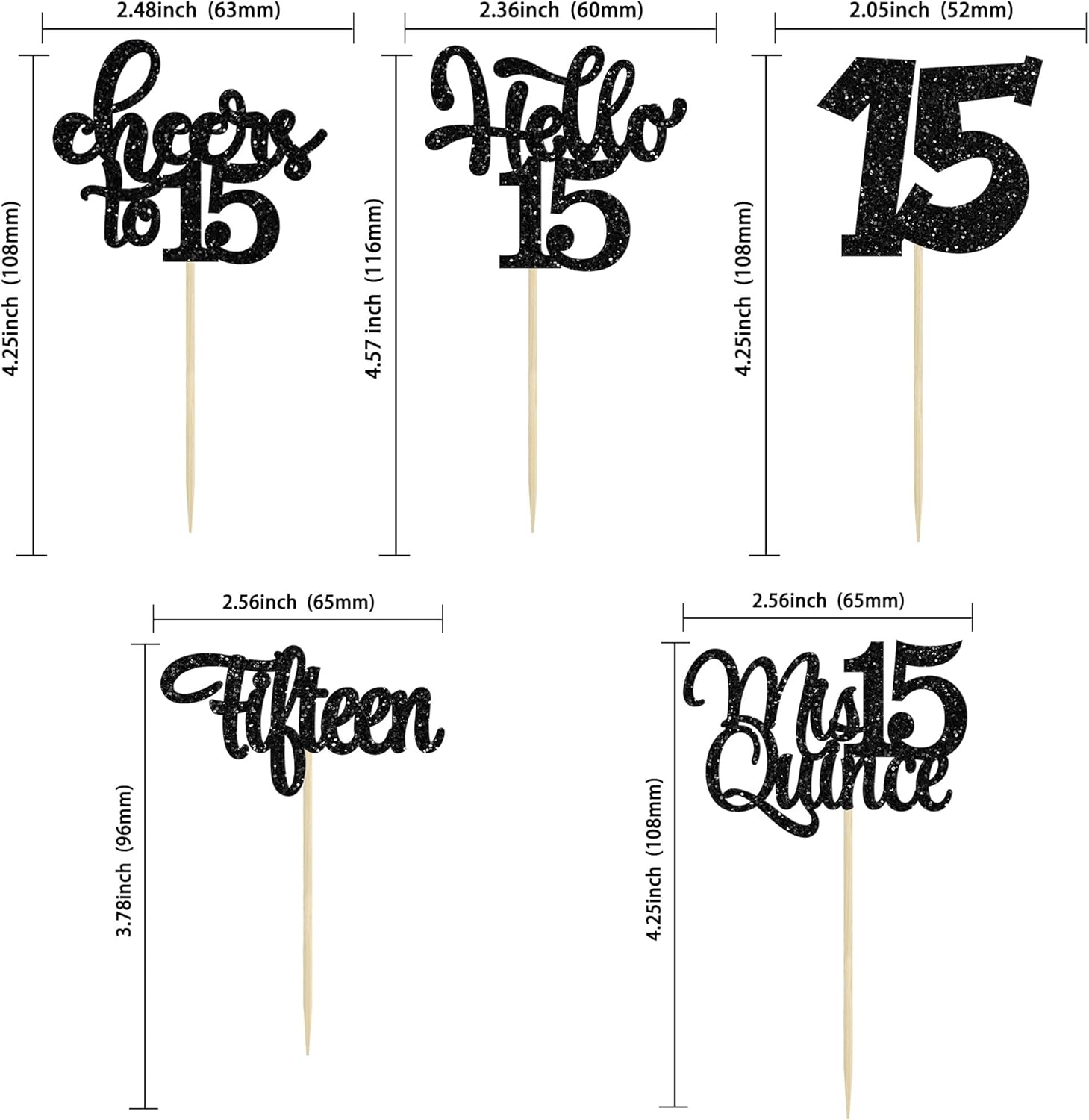 • -Package included: 24Pcs Happy 15th Birthday Cupcake Toppers. Comes with assembled, so you can insert into your cake directly, which make your cake more interesting.