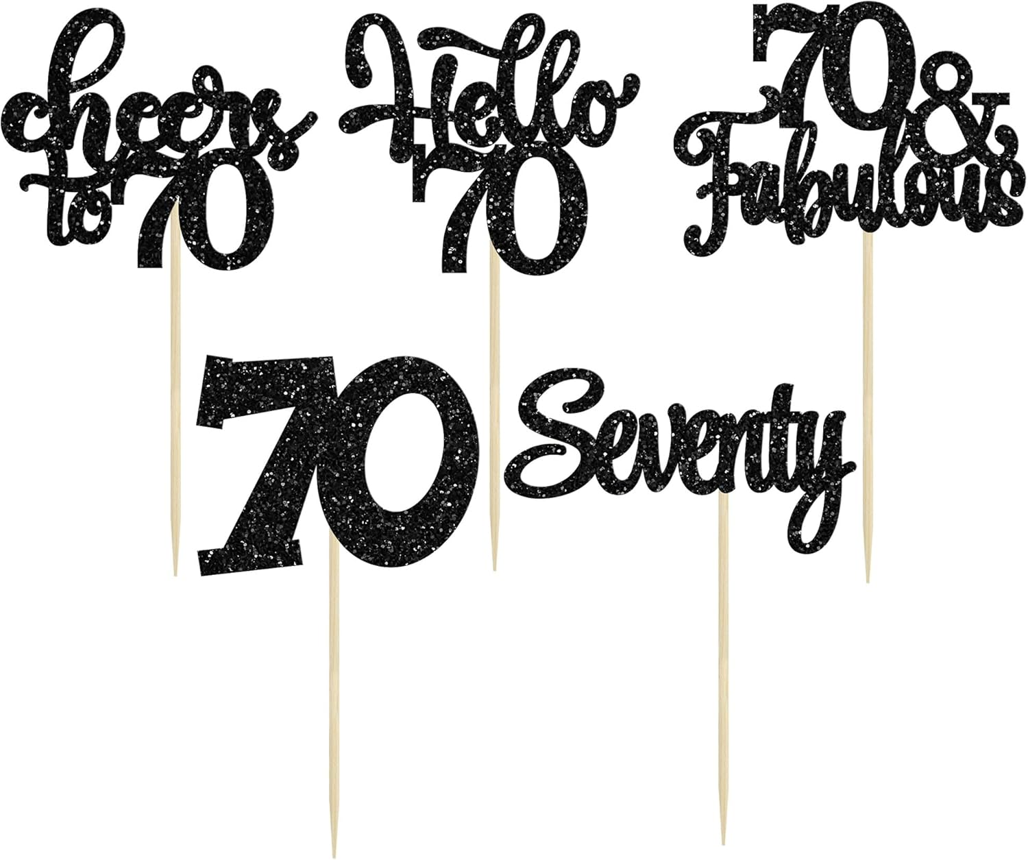 30Pcs Happy 70th Birthday Cupcake Toppers Seventy Cheers to 70 Years Old Birthday Cupcake Picks for 70th Birthday Anniversary Party Cake Decorations Supplies Black Glitter