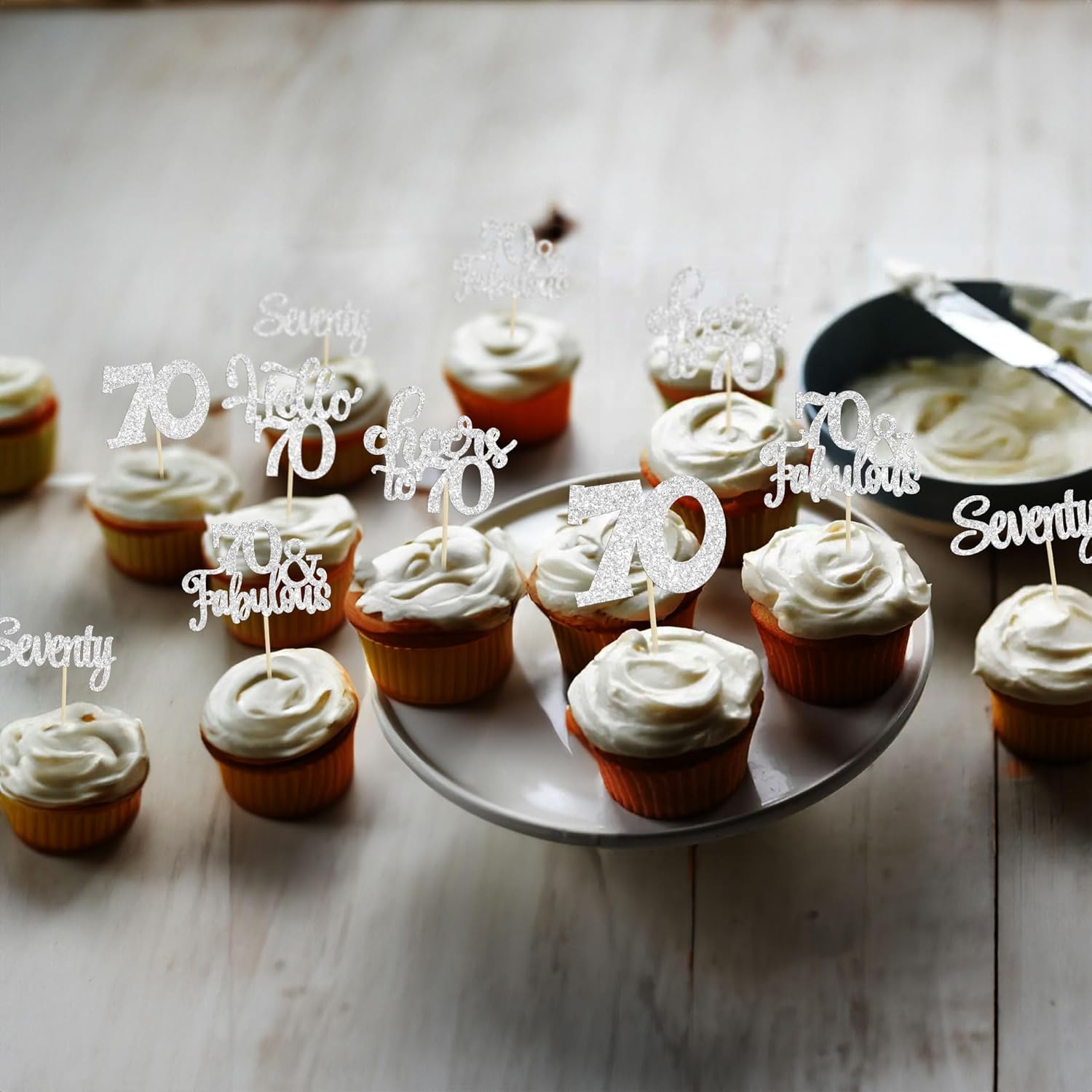 • -These Happy 70th Birthday Cupcake Toppers are so cute and good for happy 70th birthday theme party, cheers to 70 years theme party, 70 fabulous theme party, happy 70th birthday anniversary theme party cake decorations. They can make your cupcake more attractive and bring the fun to your party. You can also apply them for ice cream, fruits, cookies and other desserts.