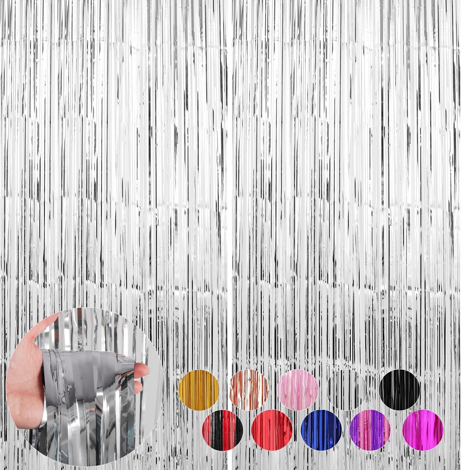 • Customer Service - 2 packs of foil fringe curtains, the size of each tinsel curtain backdrop is 3.3 ft x 8.2 ft, enough length for hanging on a door or covering a wall fully, suitable for any parties. If you are not satisfied with our foil fringe curtains party decorations, Please contact us we guarantee to give you 100% full money back.