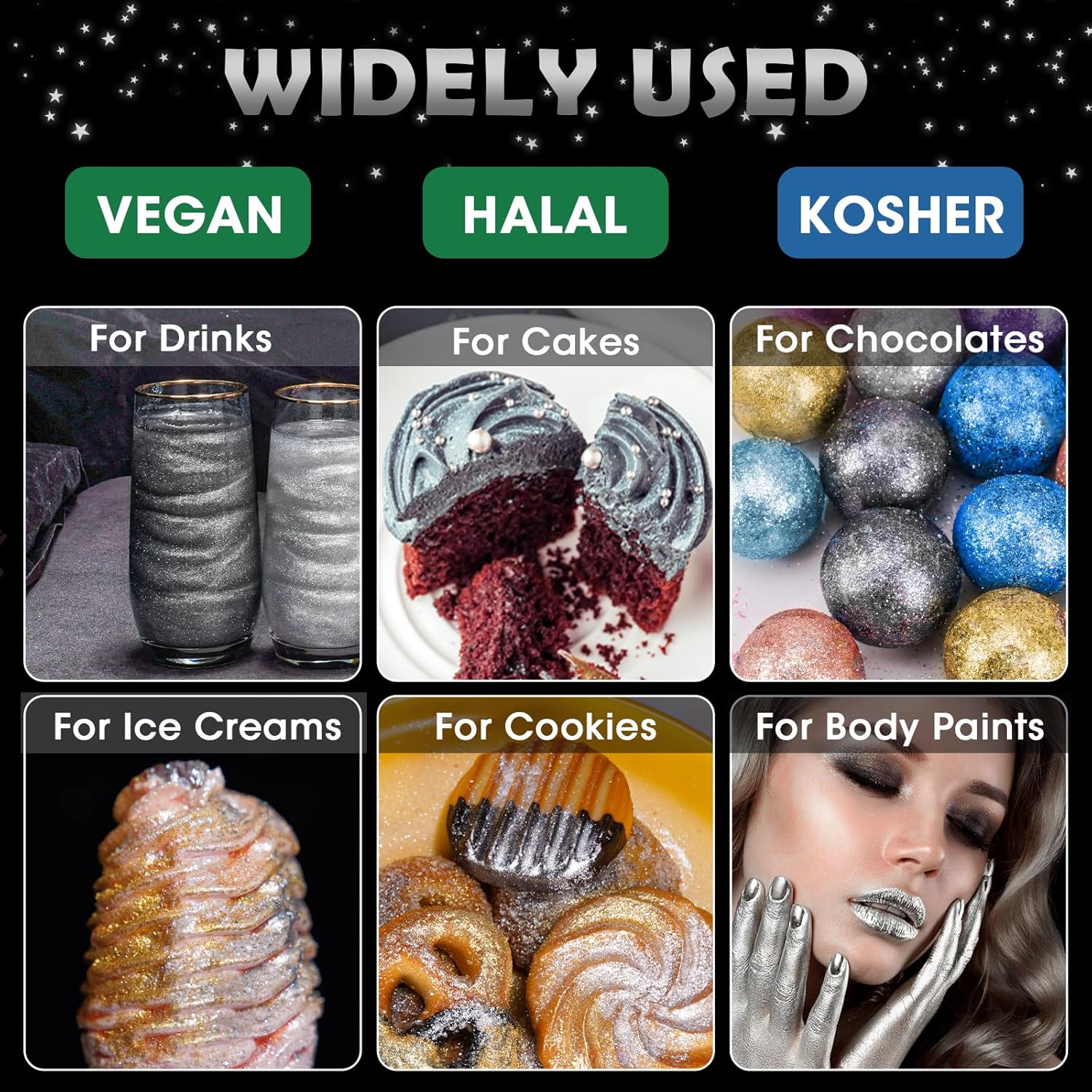 • 🌟【Vegan & Allergen-Free】Food-grade glitter uses only the highest quality vegan ingredients and does not contain common food allergens, including gluten, nuts or dairy products, so everyone can use and enjoy this product regardless of diet or food allergies. Unlike food contact glitter, these are 100% edible, so you don't need to worry about using them in your creations to make them sparkle for all.