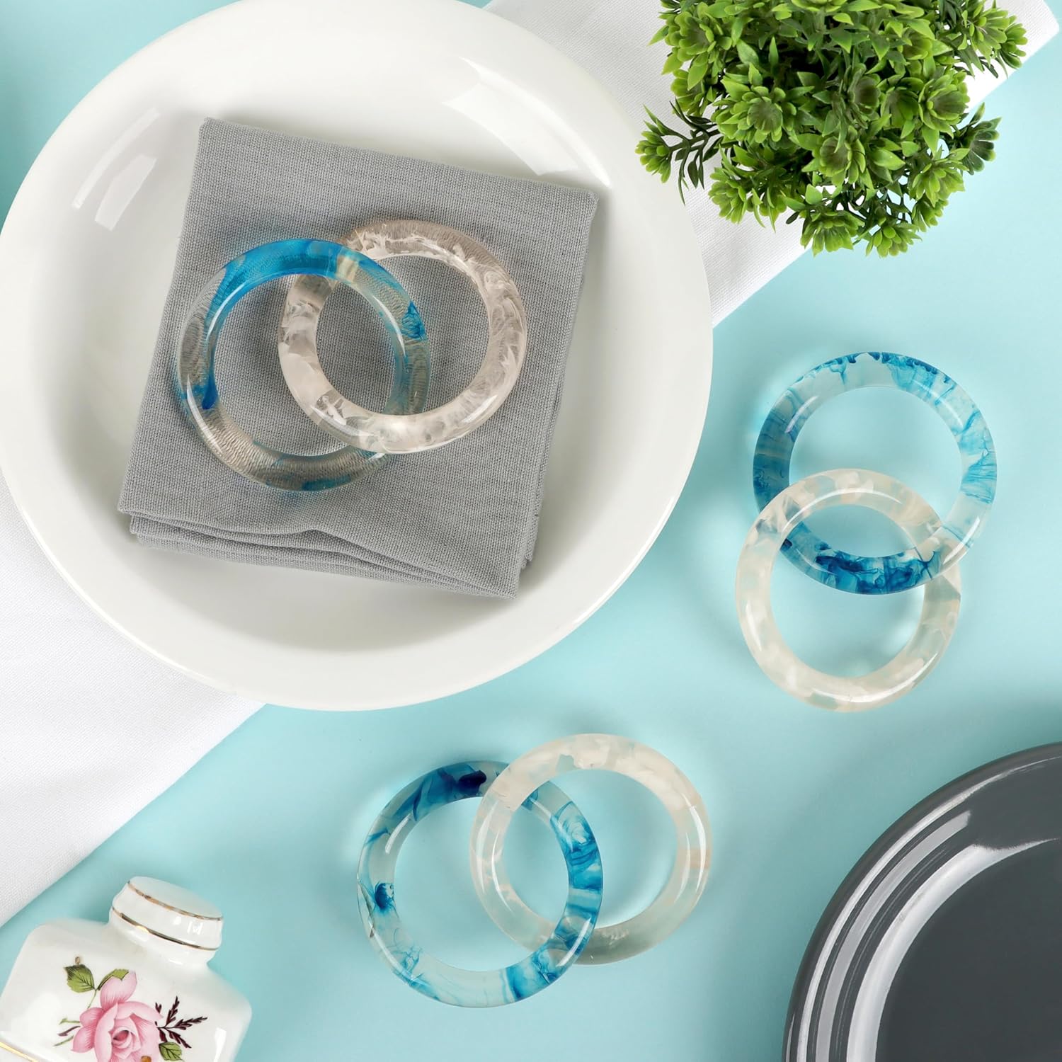 • ✅ Perfect sized : Complete set of 8 blue opaque epoxy resin napkin rings each measures 3.25 x 3.25 x 1 inches