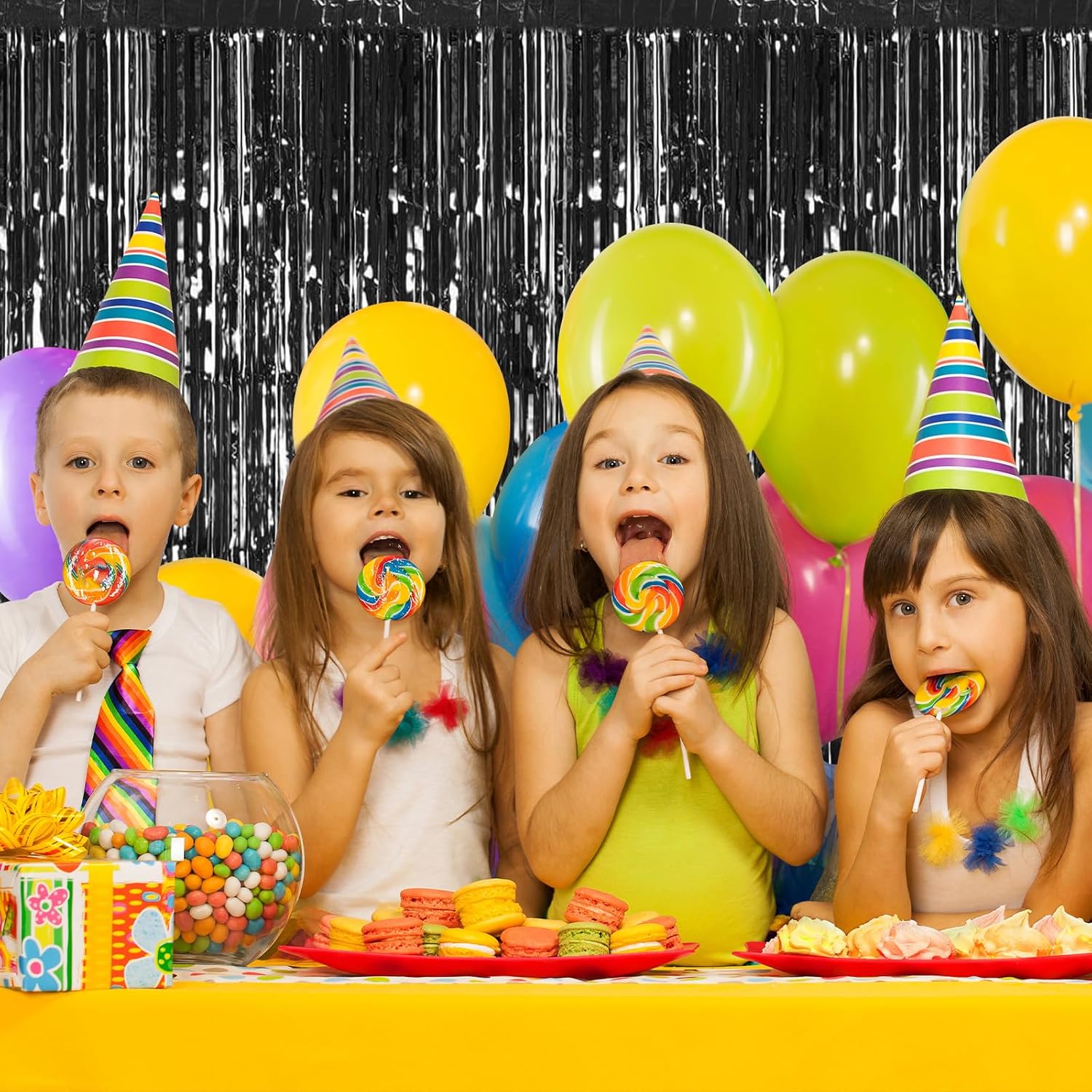 • 【Ideal Party Decoration】Show off your creativity and make your party stand out by using these black foil fringe curtains to decorate your party. You can hang them on a door or wall as a surprise entrance to the party, or pair them with LED lights, balloons, and banners to create a shiny party backdrop for different themes and occasions.