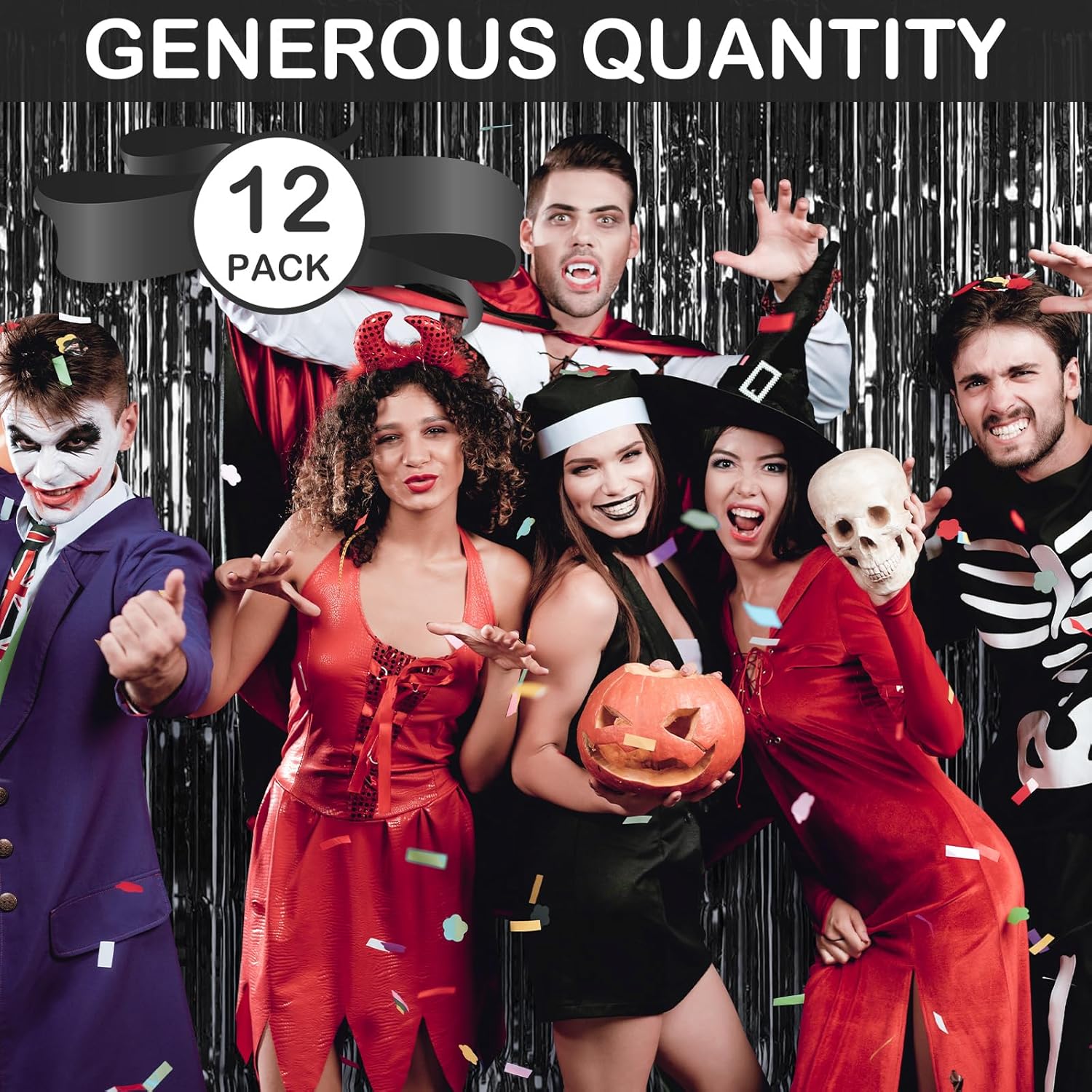 • 【Generous Quantity】Our party decoration supplies include 12 pieces of black party streamers, the size of each black foil curtain is 3.3ft x 8.2ft(1m x 2.5m). The extended length and rich quantity can help you create a sparkling party atmosphere and meet your various party decoration needs.