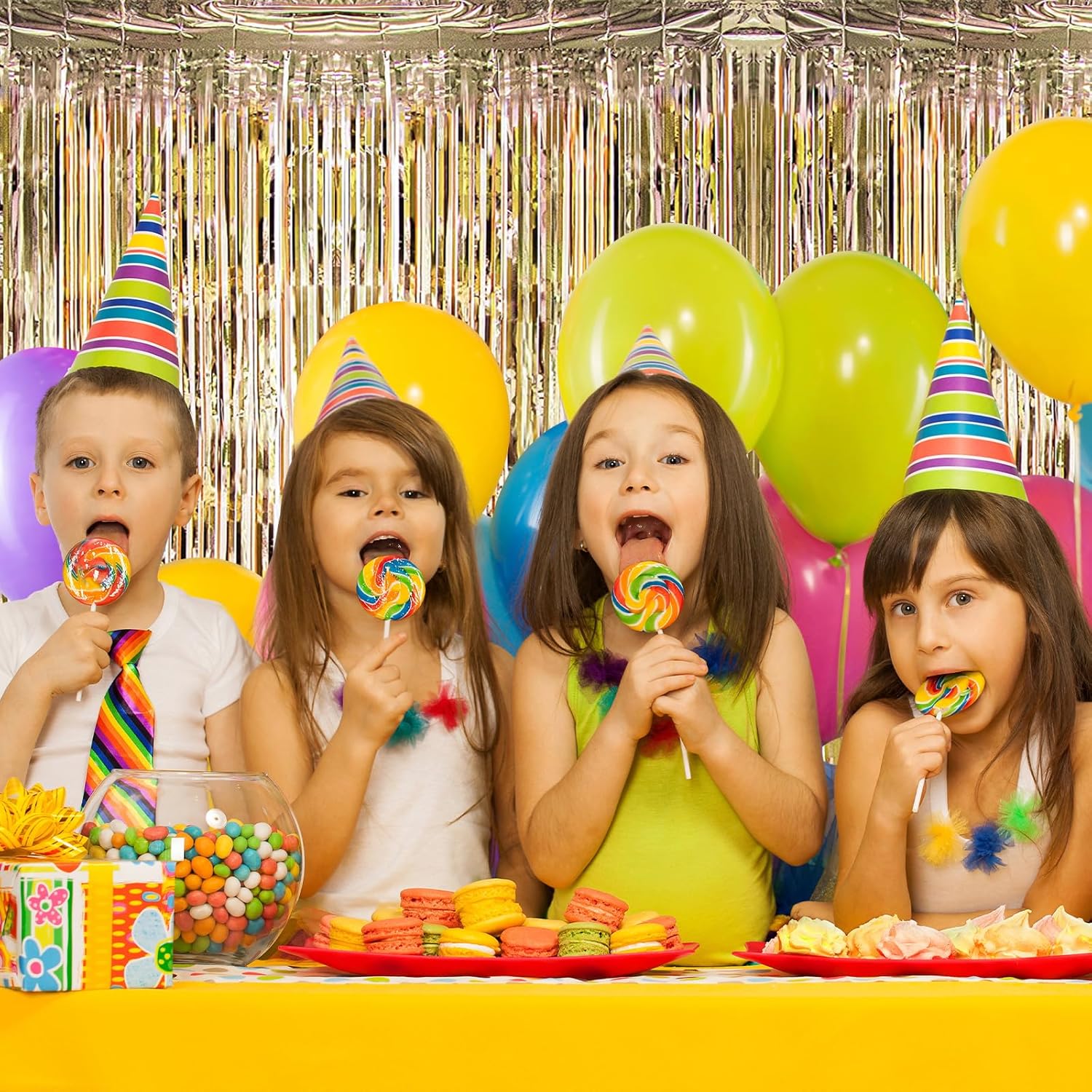• 【Ideal Party Decoration】Show off your creativity and make your party stand out by using these champagne gold foil fringe curtains to decorate your party. You can hang them on a door or wall as a surprise entrance to the party, or pair them with LED lights, balloons, and banners to create a shiny party backdrop for different themes and occasions.