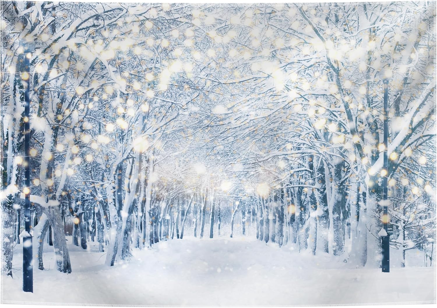 7x5FT Winter Snowy Scene Photography Backdrop Wonderland Snowflake Tree Snow Background Bokeh Glitter White Snow Forest Landscape Party Photo Booth Studio Props