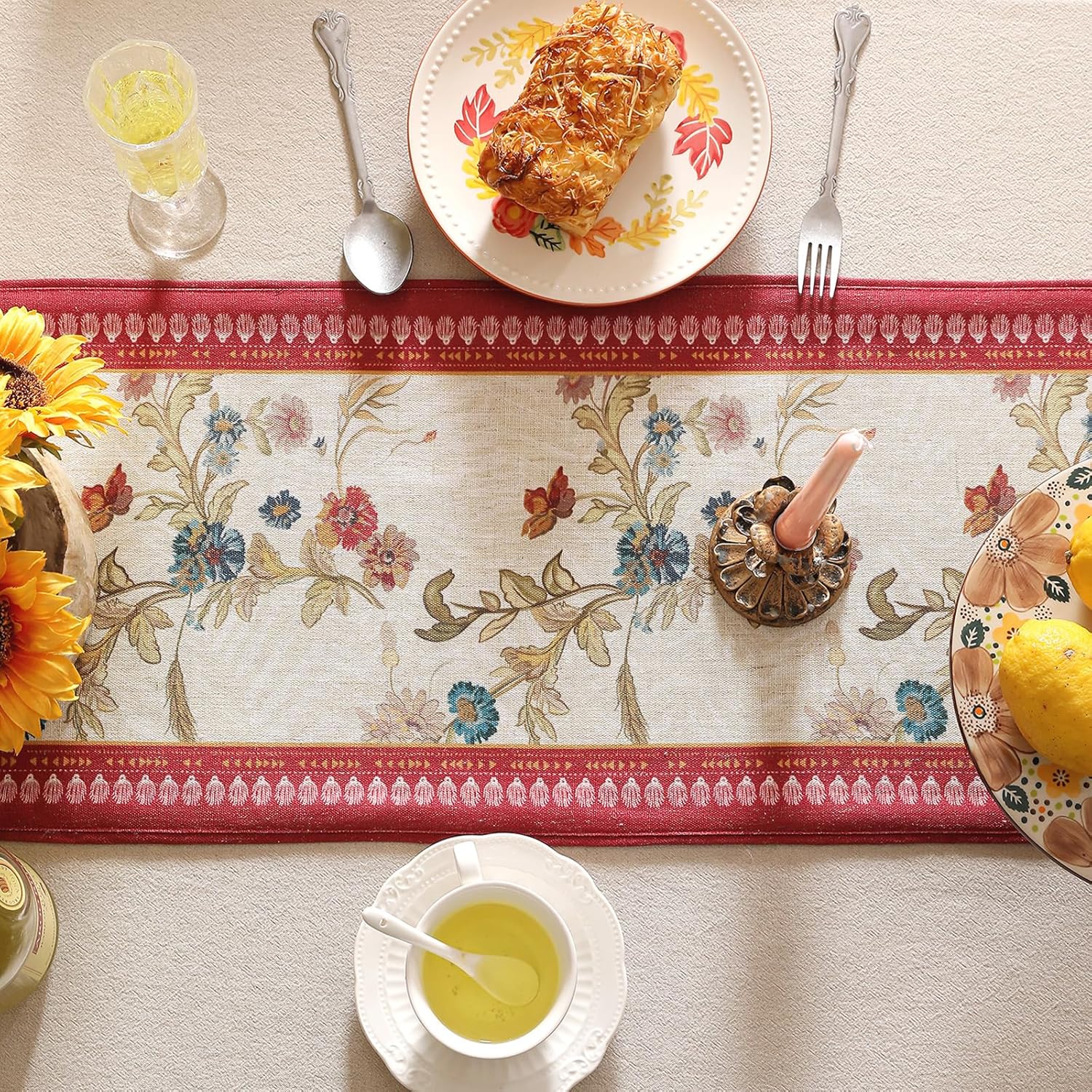• Material: To ensure long-lasting color and minimal shrinkage, we have ditched the traditional all-linen process and instead used a new blend of 8% linen and 92% polyester. This innovative combination will provide you with a superior experience, making your table runner last longer and retaining its vibrant color.