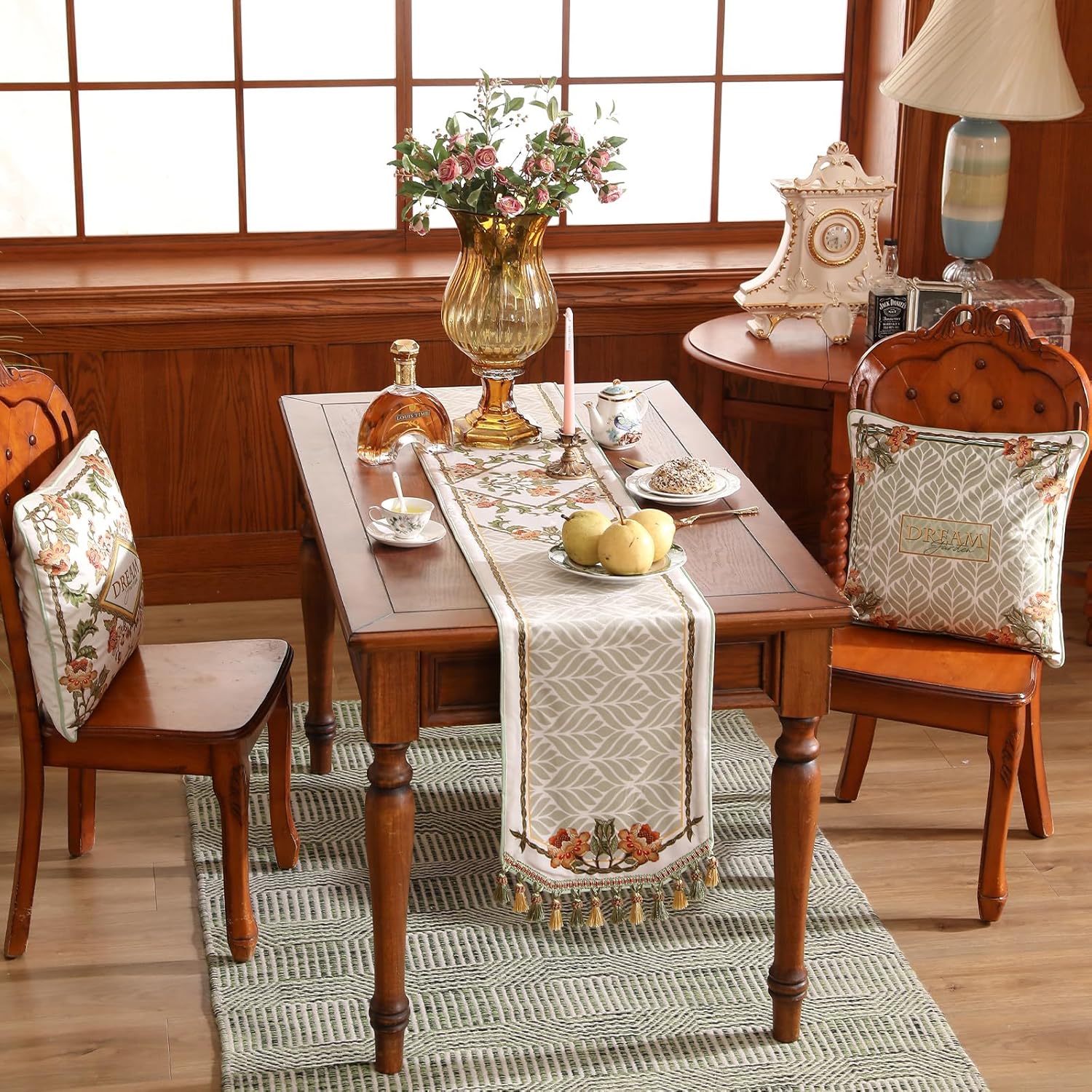 • Care and Maintenance: Depending on the design, our table runners with tassels or other decorations should be gently hand washed, and then air-dried. For items without decorative designs, they can be machine washed on a gentle cycle. After washing, they should be dried on a low heat setting, and ironed if needed. It is important to avoid using bleach to maintain the quality of the fabric.