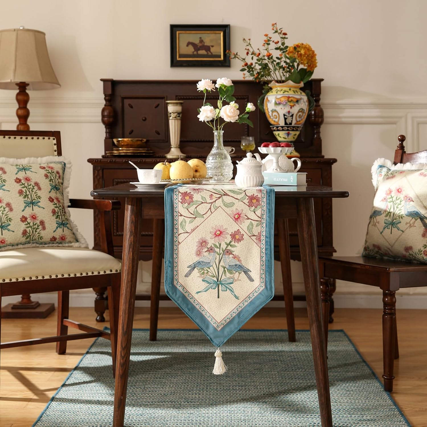 • Care and Maintenance: Depending on the design, our table runners with tassels or other decorations should be gently hand washed, and then air-dried. For items without decorative designs, they can be machine washed on a gentle cycle. After washing, they should be dried on a low heat setting, and ironed if needed. It is important to avoid using bleach to maintain the quality of the fabric.