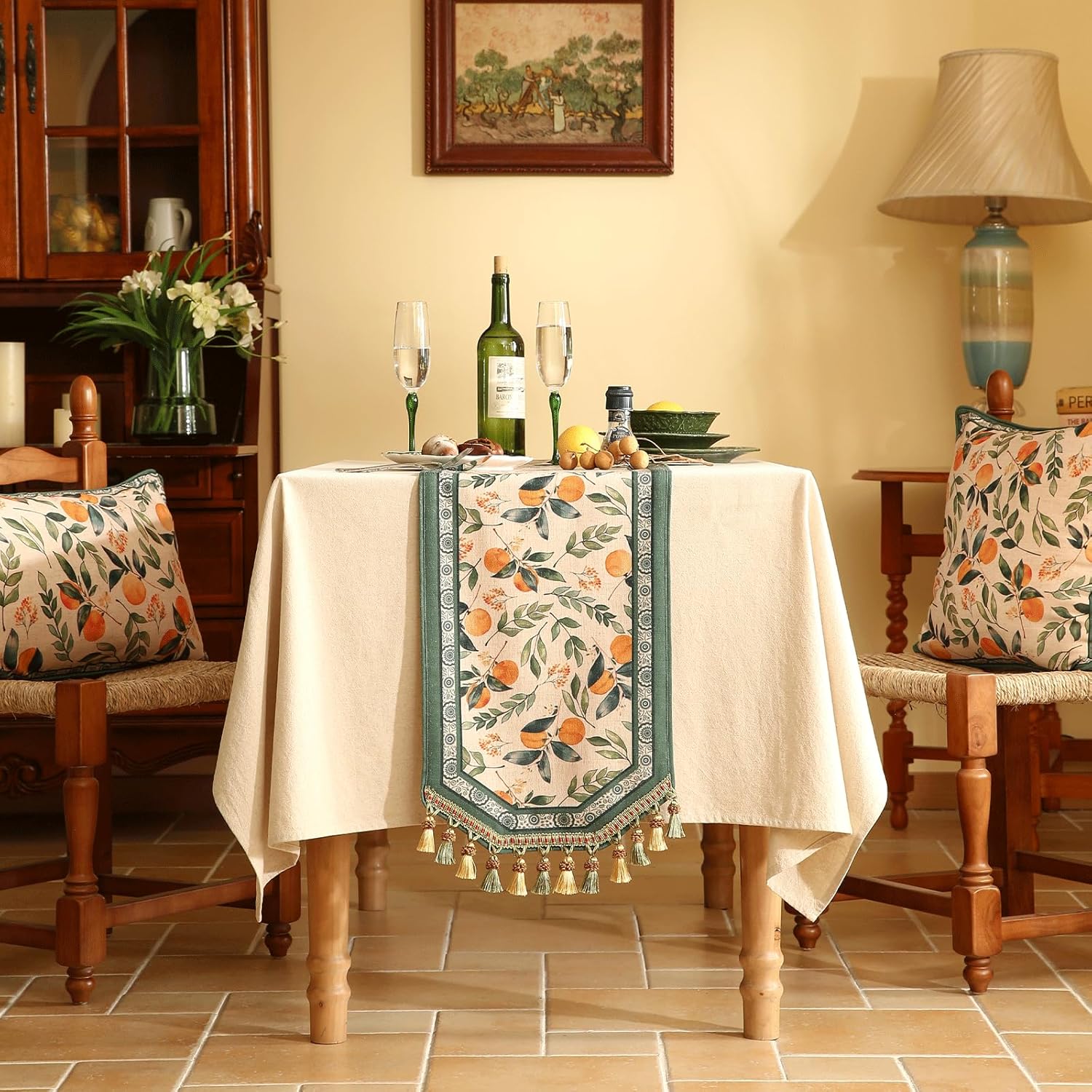 • Care Instructions: Table runners with tassels, pendants, or other decorations should only be washed by hand and placed in a cool, well-ventilated area to dry after washing. For other models without decorations, they can be washed in a gentle cycle in the washing machine or by hand, tumble dried on low heat, and ironed if needed. Please avoid using bleach.