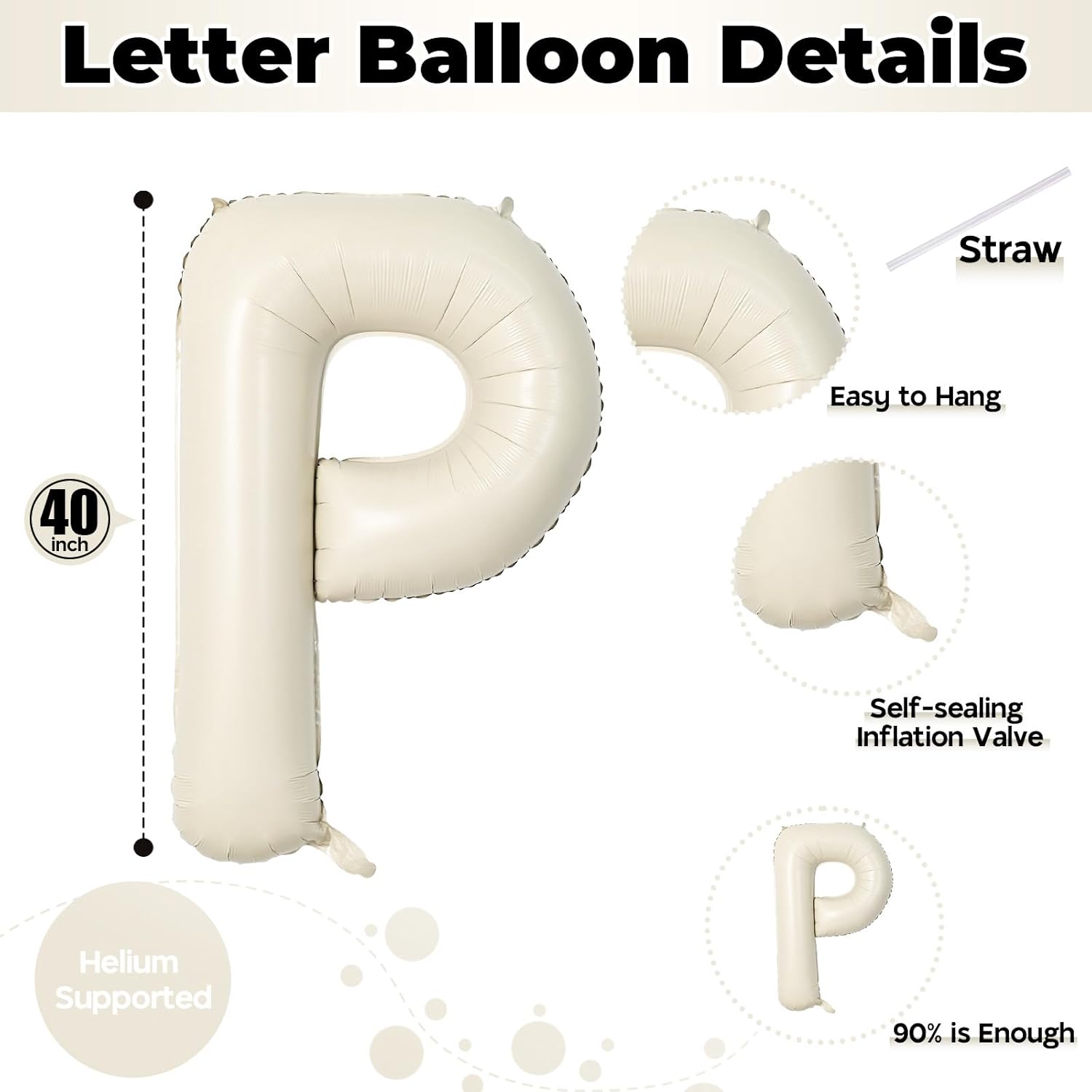 • ๐ŸŽˆ What You Get: Our product package includes 1pcs 40 inch "P" letter foil cream white balloon and 1pcs convenient straw for inflate. You can choose any big letter balloons to combine and customize the word you want to form. Make your party more unique and meaningful.