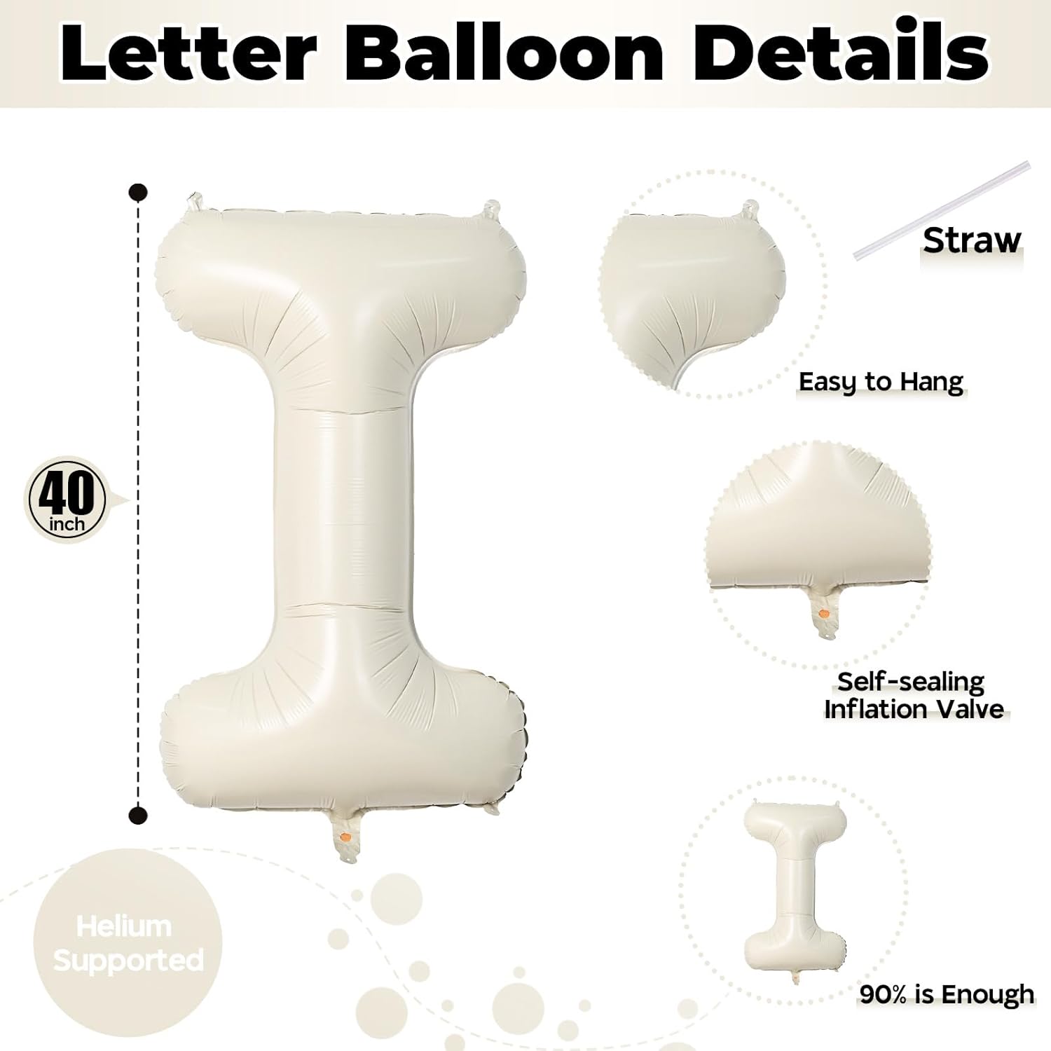 • ๐ŸŽˆ What You Get: Our product package includes 1pcs 40 inch "I" letter foil cream white balloon and 1pcs convenient straw for inflate. You can choose any big letter balloons to combine and customize the word you want to form. Make your party more unique and meaningful.