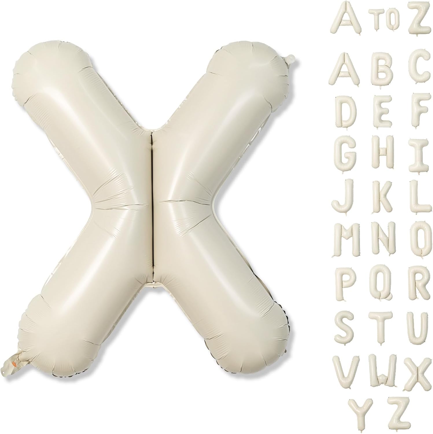 Giant Alphabet X Foil Name Balloons, Cream Ivory White Inflatable Word X Letters for Birthday Decor, 40 Inch Mylar Beige A-Z Custom Letter for Girls Baby Shower Party Decoration Supplies