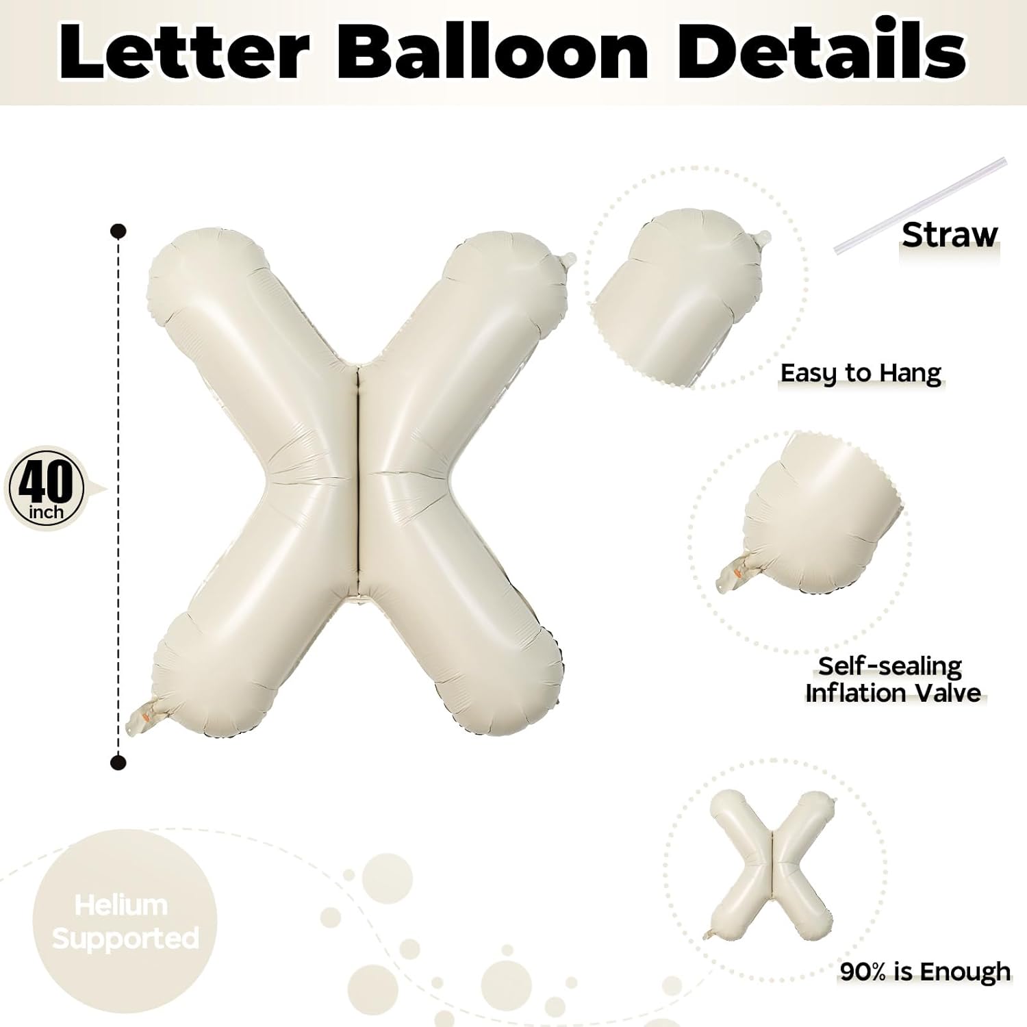 • ๐ŸŽˆ What You Get: Our product package includes 1pcs 40 inch "X" letter foil cream white balloon and 1pcs convenient straw for inflate. You can choose any big letter balloons to combine and customize the word you want to form. Make your party more unique and meaningful.