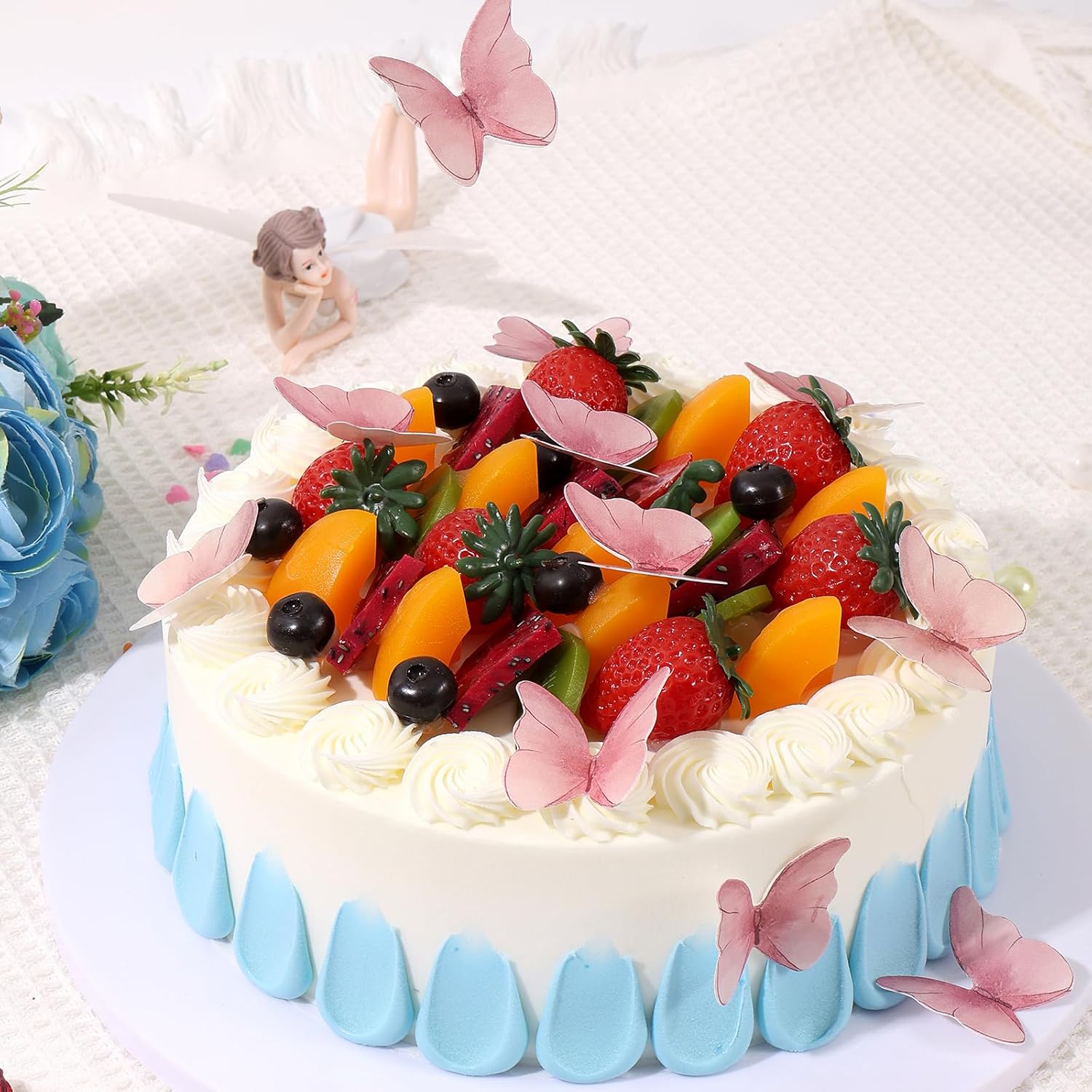 YOcity 48Pcs Edible Butterflies Cake Cupcake Toppers Pink Wafer Paper Butterfly Cake Decorations for Wedding Birthday Party Cupcakes Decorating Pink