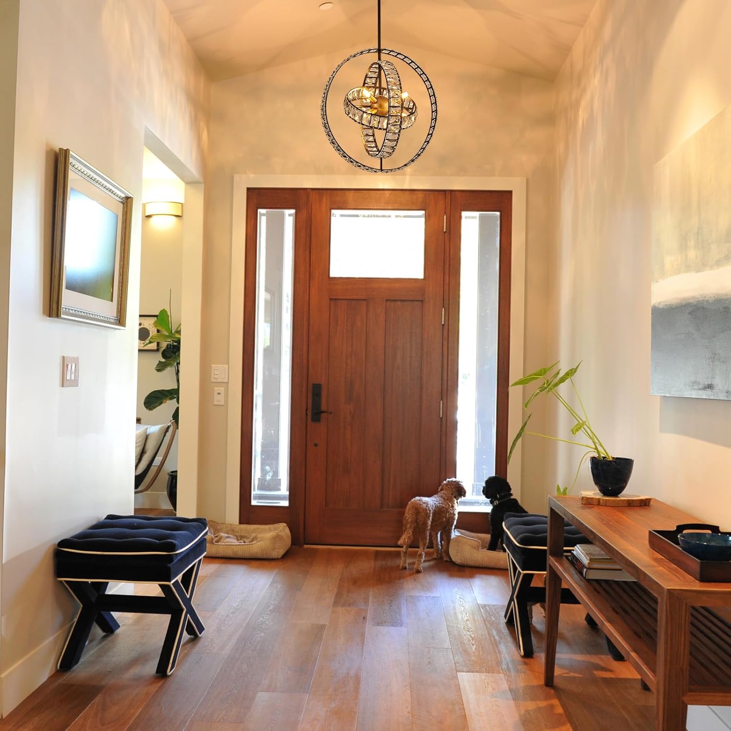 • 【Height Adjustable】This black gold crystal globe chandelier is adaptable for sloped, hanging and flat ceiling. Fixture Dimensions: 18.5" high x 18.11" wide. The hanging pole is adjustable by 2 rods (11.81 inches each). The total length of the hanging pole is 23.62 inches(60cm).