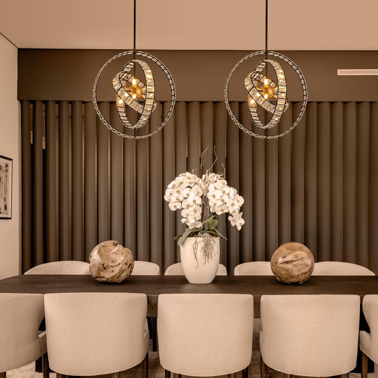 • 【Unique Design】Crystal globe sputnik chandelier with adjustable round shade, by rotating the circle, you will get round chandeliers of different shapes; turn on the lamp, there will be beautiful sparkling light effects; suitable for living room, dining room, hallway, bedroom, kitchen island, etc.