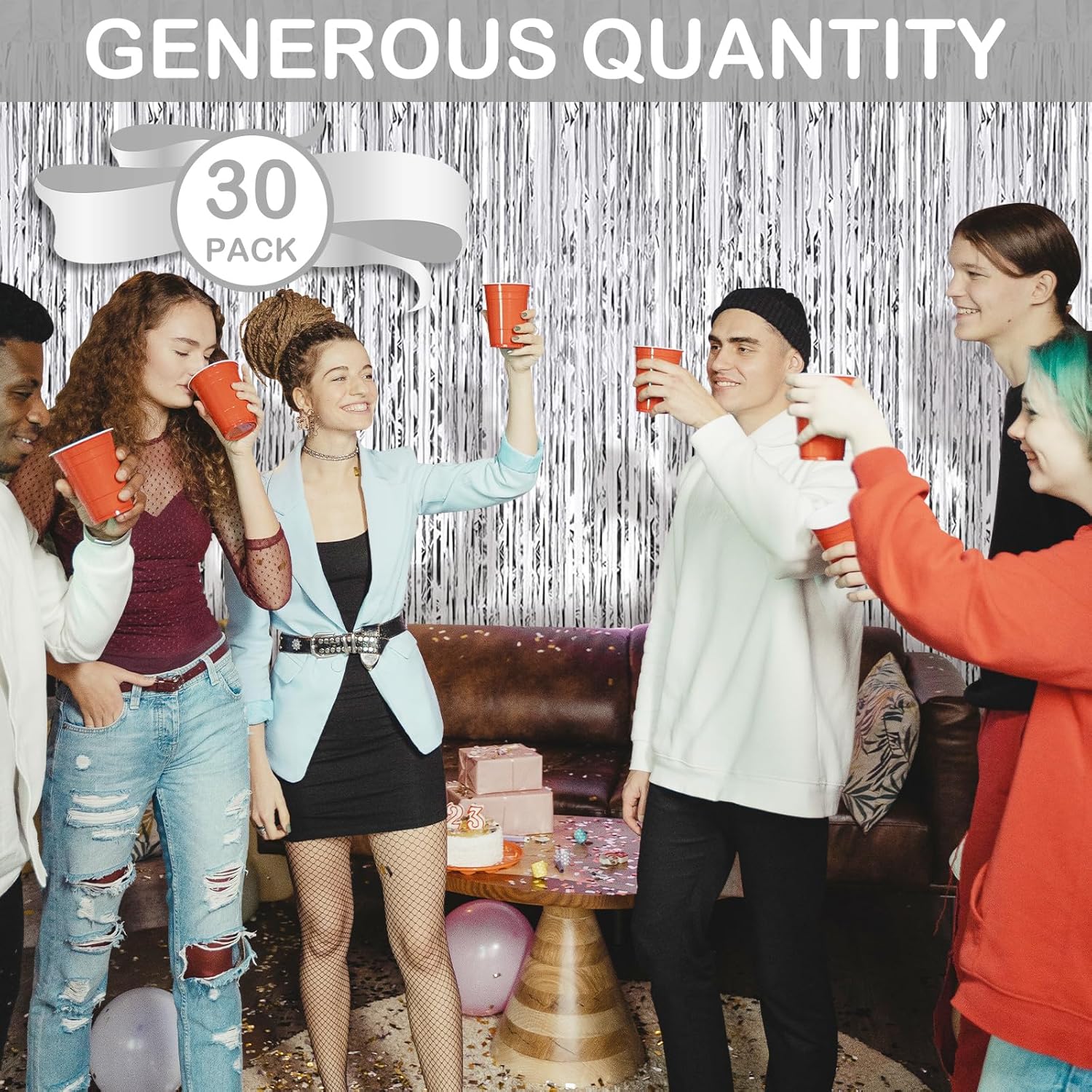 • 【Extra Large Quantity】You will receive 30 packs of silver foil fringe curtains. Each pack of foil curtains size is 3.28ft in width and 8.2ft in length, abundant quantity and enough length to meet almost all your party decoration needs.