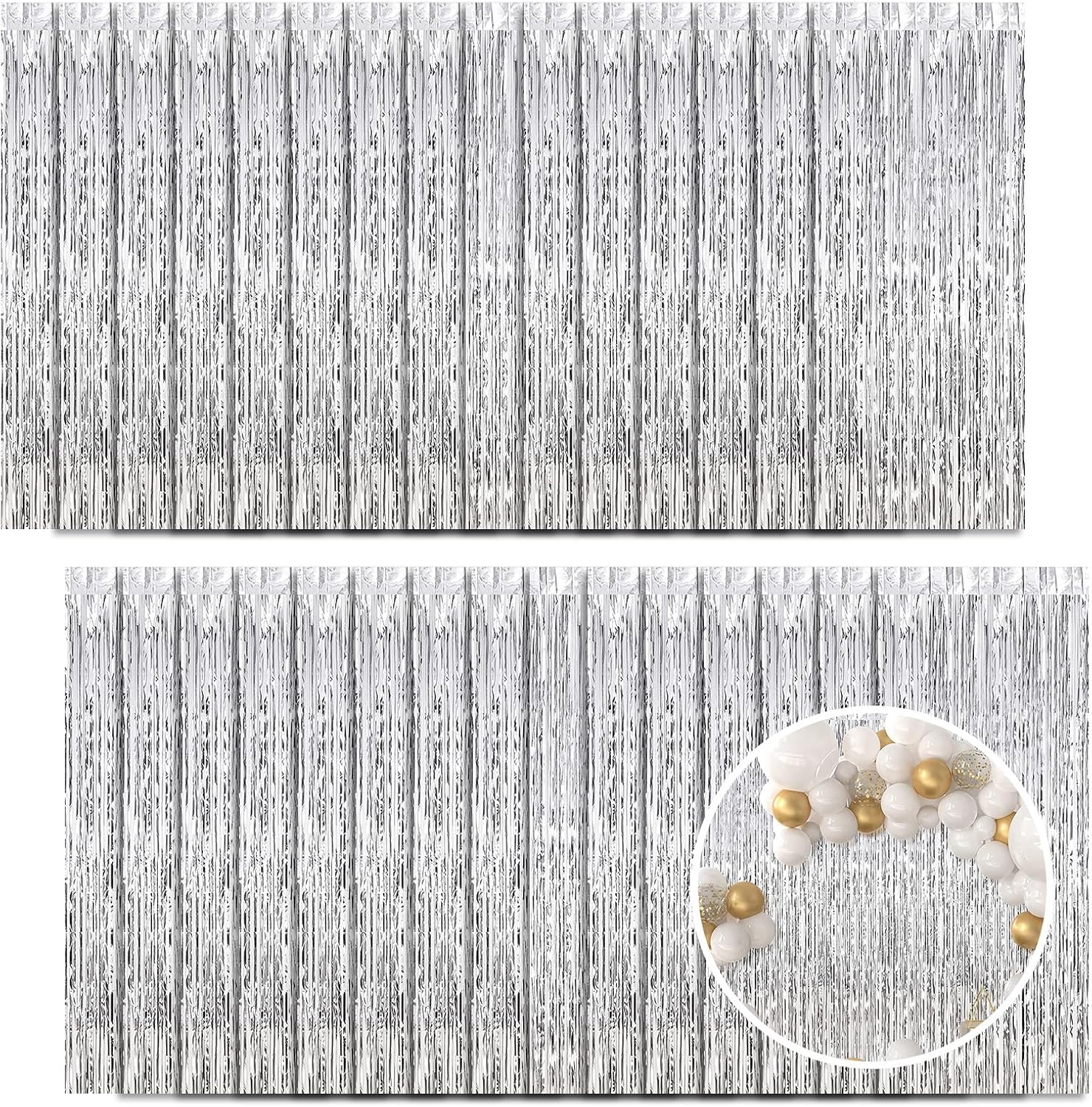 • 【Premium Material】The silver foil curtain backdrops are made of sturdy and flexible tinsel with a shiny and reflective surface, which will maintain the glitter effect all the time. Great for creating a sparkling atmosphere as decorations for parties.
