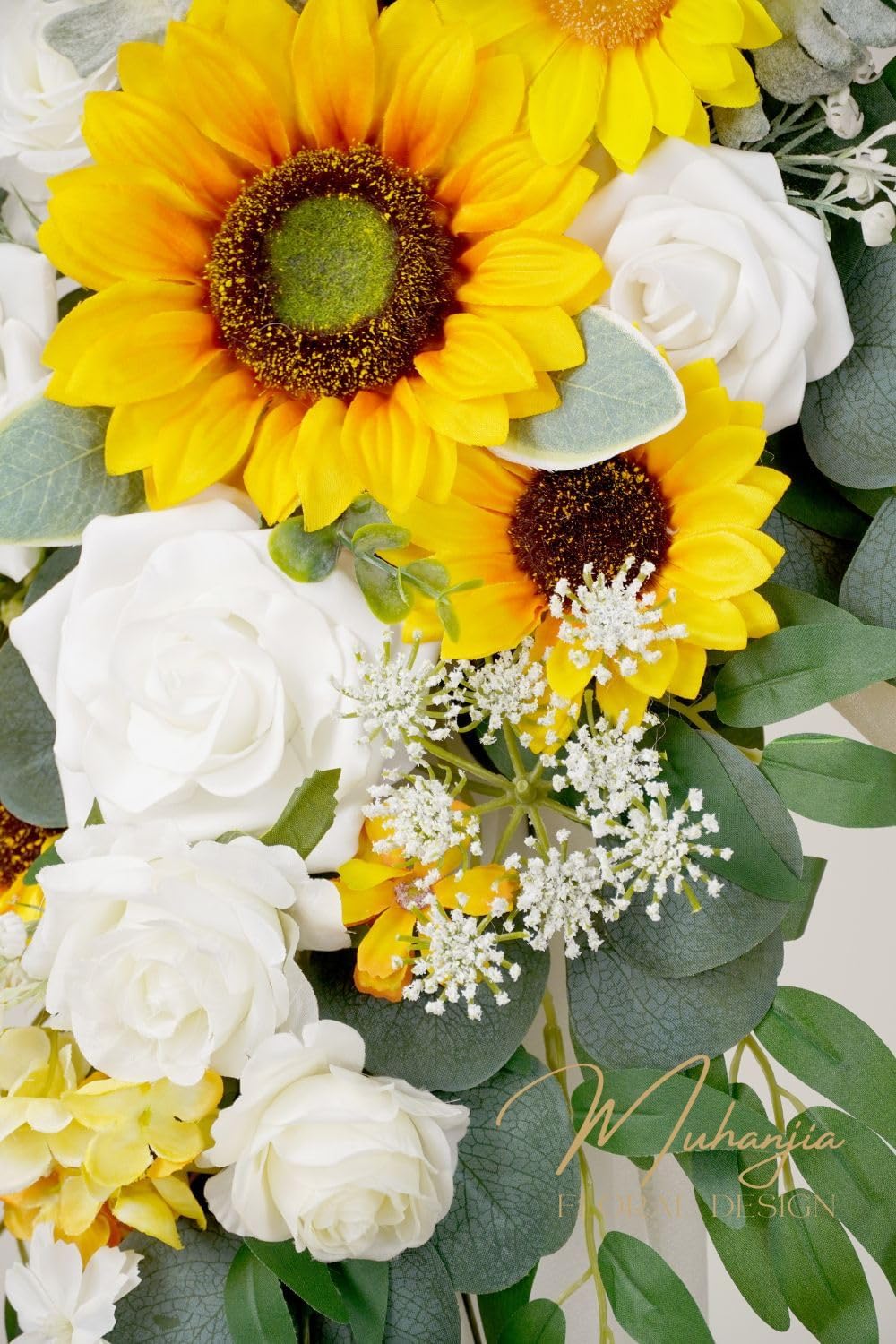 Artificial Arch Flowers Kit(Pack of 4),2Pcs Artificial Flower Arch Decor, 2Pcs Drapes, Ceremony and Reception Background Rose Decoration, Rose Sunflower Floral and Outdoor Party Decor