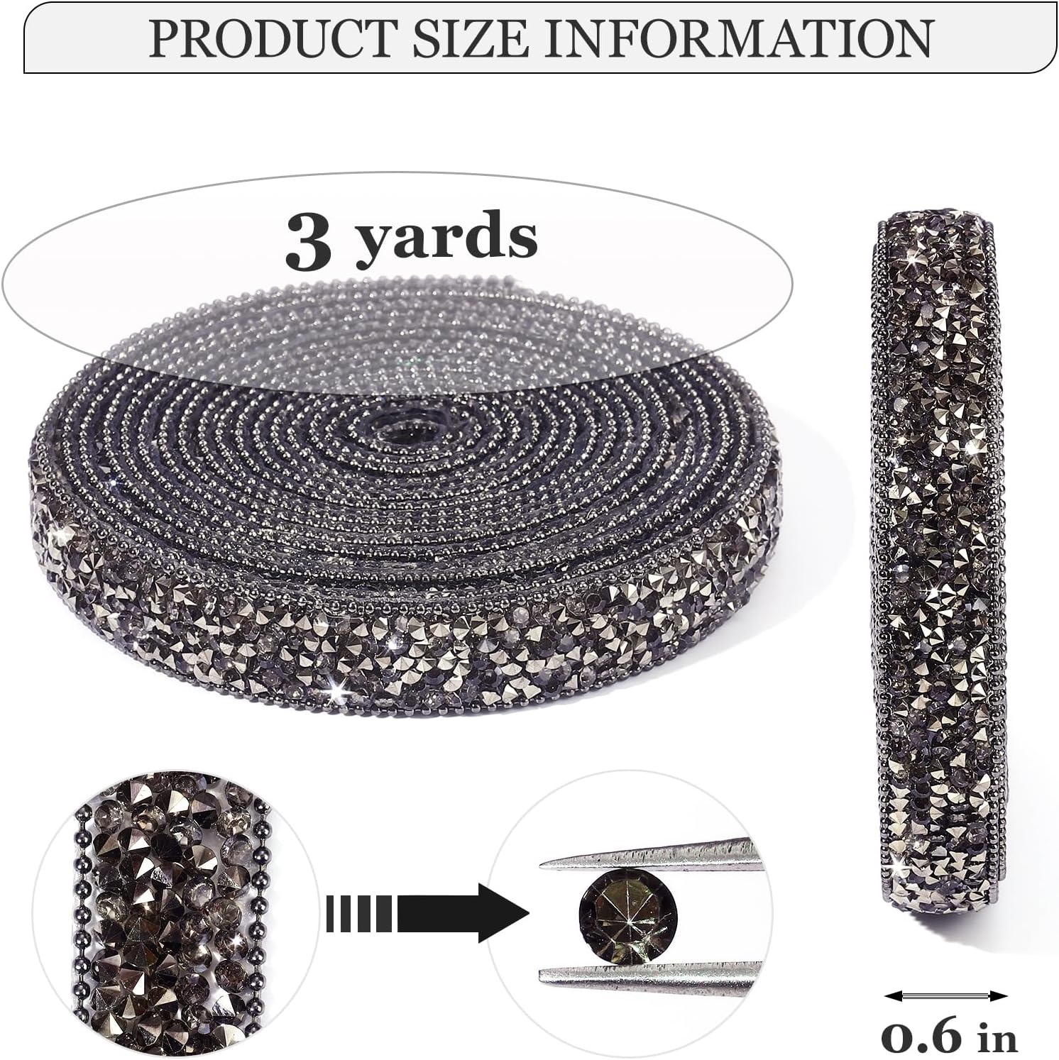 • Black Rhinestone Ribbon: 1 roll of self-adhesive rhinestone ribbon Sticker, approx 3 yards in length, 1.5cm/0.6inch in width. (PACKAGE CONTENT)