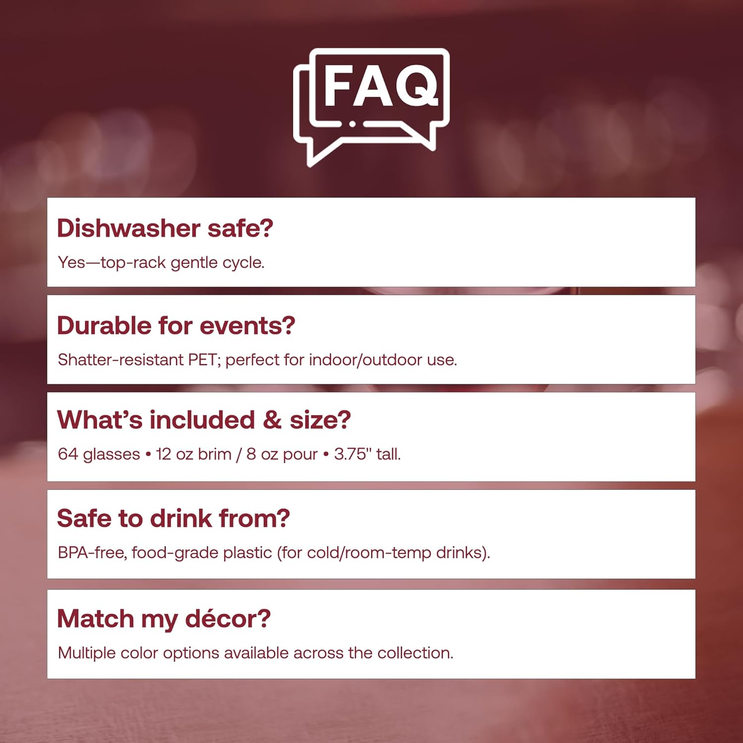 • VALUE PACK FOR LARGE EVENTS – With 64 plastic stemless wine glasses in each pack, this bulk set offers a stylish, affordable solution for all your guests, ideal for large celebrations.