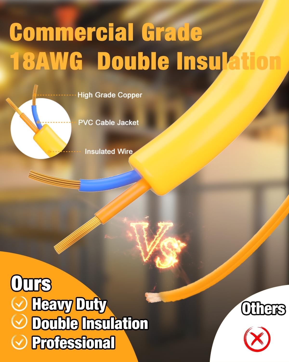 • 【Durable & Construction Grade】Durable enough to withstand the rigors of a construction site while being light-weight to use in residential applications. No need to replace the bulb, and it remains intact even if it falls from a high point. Construction grade temporary string lights are manufactured with 18/2 SJTW cable. Make every penny you spend more valuable.