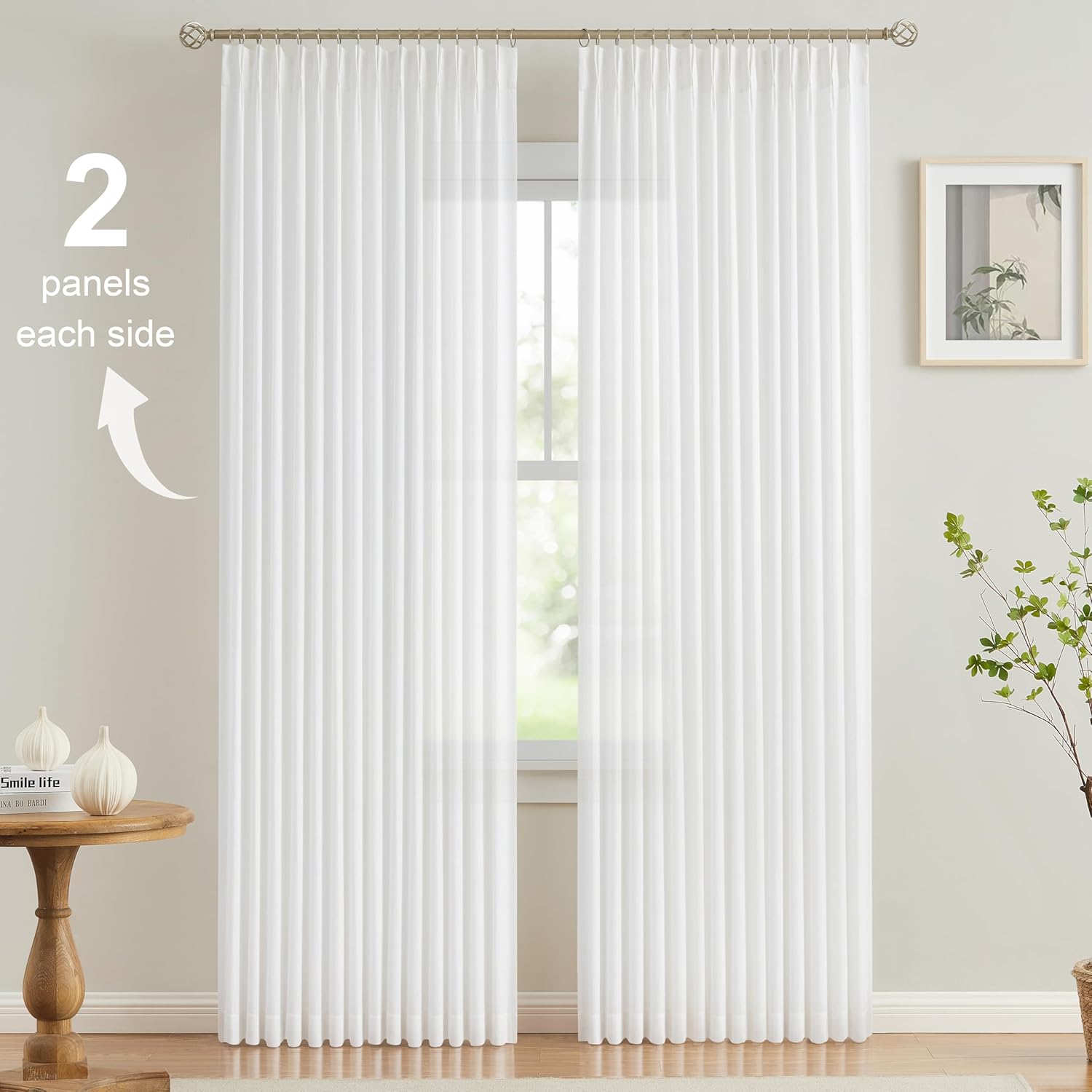 • Pinch Pleats Design:Each white curtain panel with 7 pinch pleats generates modern and luxury feel.Hanging these pinch pleat curtains to elevate your windows and increase the aesthetic value to any spaces,bedroom,living room,nursery,office,etc.