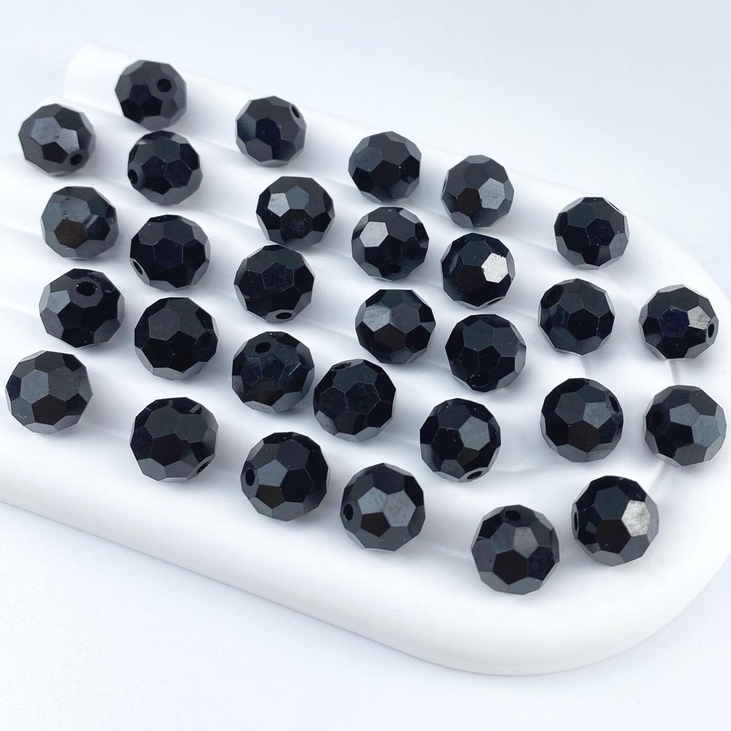 100 PCS 8mm Crystal Glass Beads Round Multiple Faceted Loose Spacer Glass Beads for DIY Handcrafte Bracelet Necklace Earring Jewelry Making(Black)