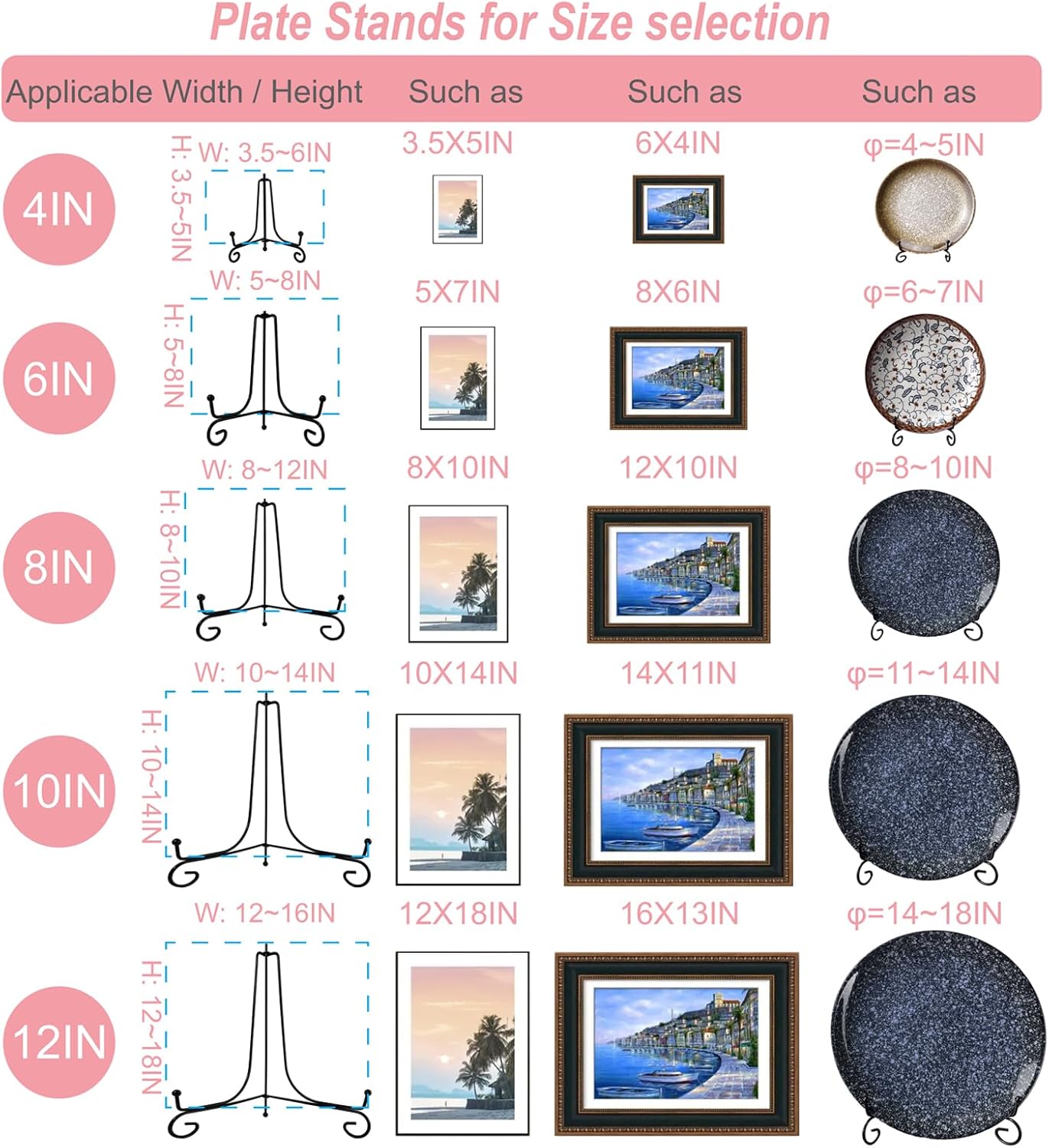 • Choose The Right Size: 8 Inch plate display stands are suitable for items of Rectangle 8 - 12 Inch Height / Wide and Round φ=8 - 10 IN Diameter. Plate holders for displaying are made of solid metal wire and black spray paint resistant to corrosion