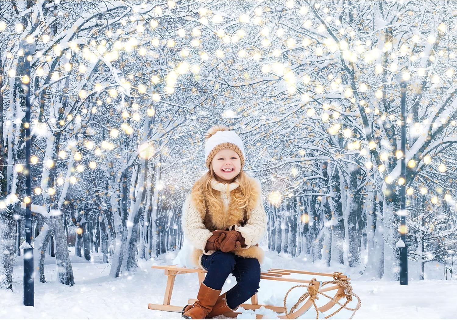 10x8FT Winter Snowy Scene Photography Backdrop Wonderland Snowflake Tree Snow Background Bokeh Glitter White Snow Forest Landscape Party Photo Booth Studio Props
