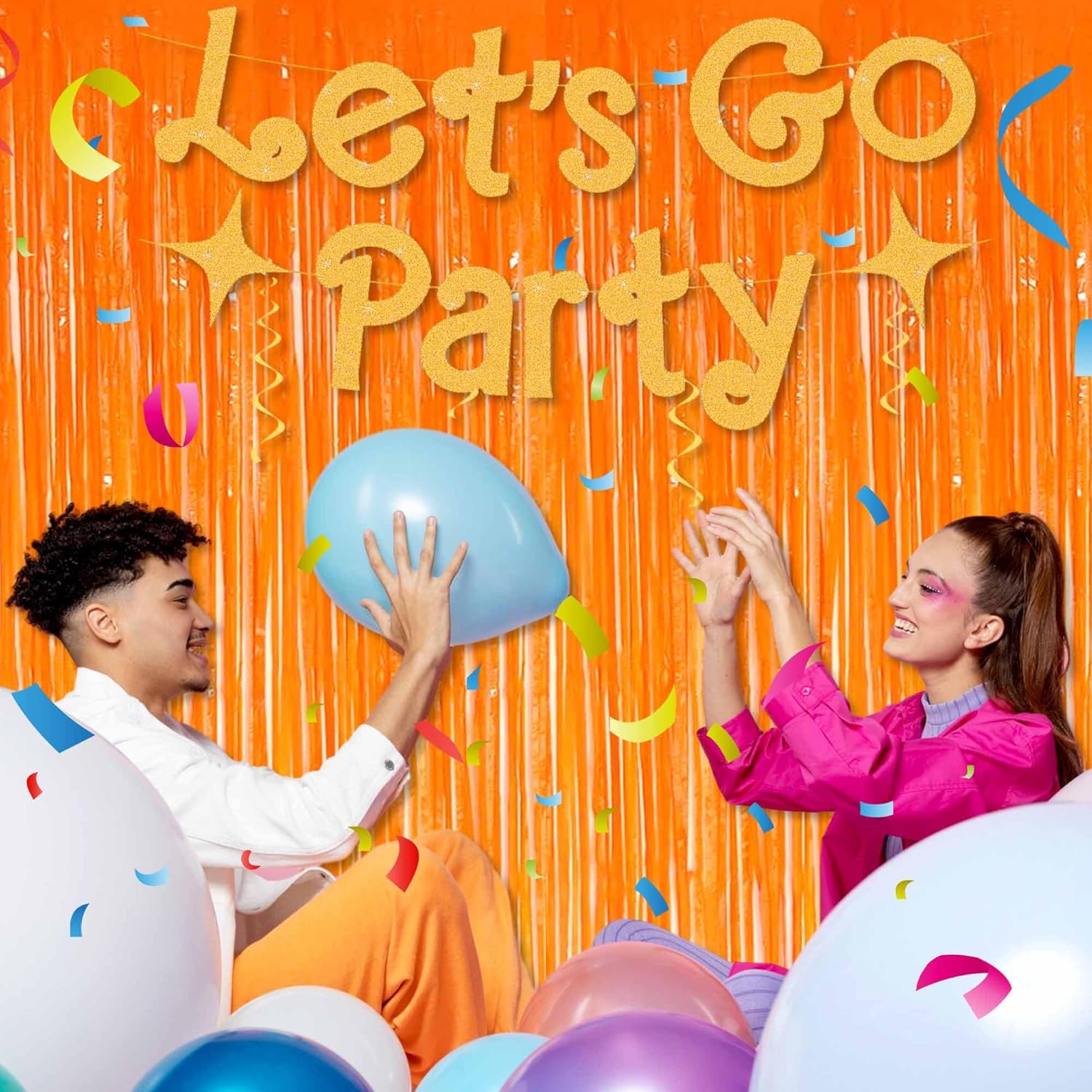 6 Pack Macaron Orange Foil Fringe Curtains Backdrop, 3.28 x 8.2 Ft Metallic Streamers Tinsel Curtains Background for Photo Booth, Birthday, Weddings, Carnivals, Graduation, Themed Party Decorations