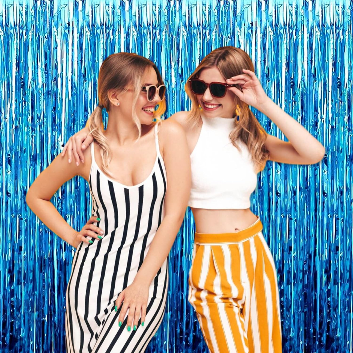 • Package and size: 6 Packs Foil Fringe Streamers Curtain Backdrop. The size is 3.28 x 8.2 feet. It's long, enough to fit any party occasion. Made of metallic foil material, shiny and creating dazzling effects, adding luxury and visual impact to the party