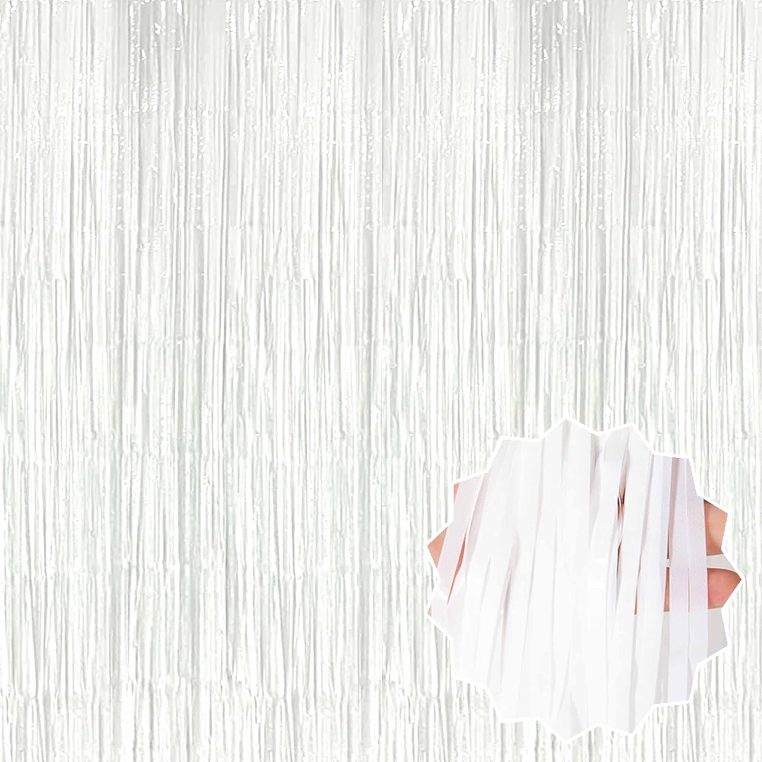 3 Pack Macaron White Foil Fringe Curtains Backdrop, 3.28 x 9.8 Ft Metallic Streamers Tinsel Curtains Background for Photo Booth, Birthday, Halloween, Christmas, New Year Party Decorations