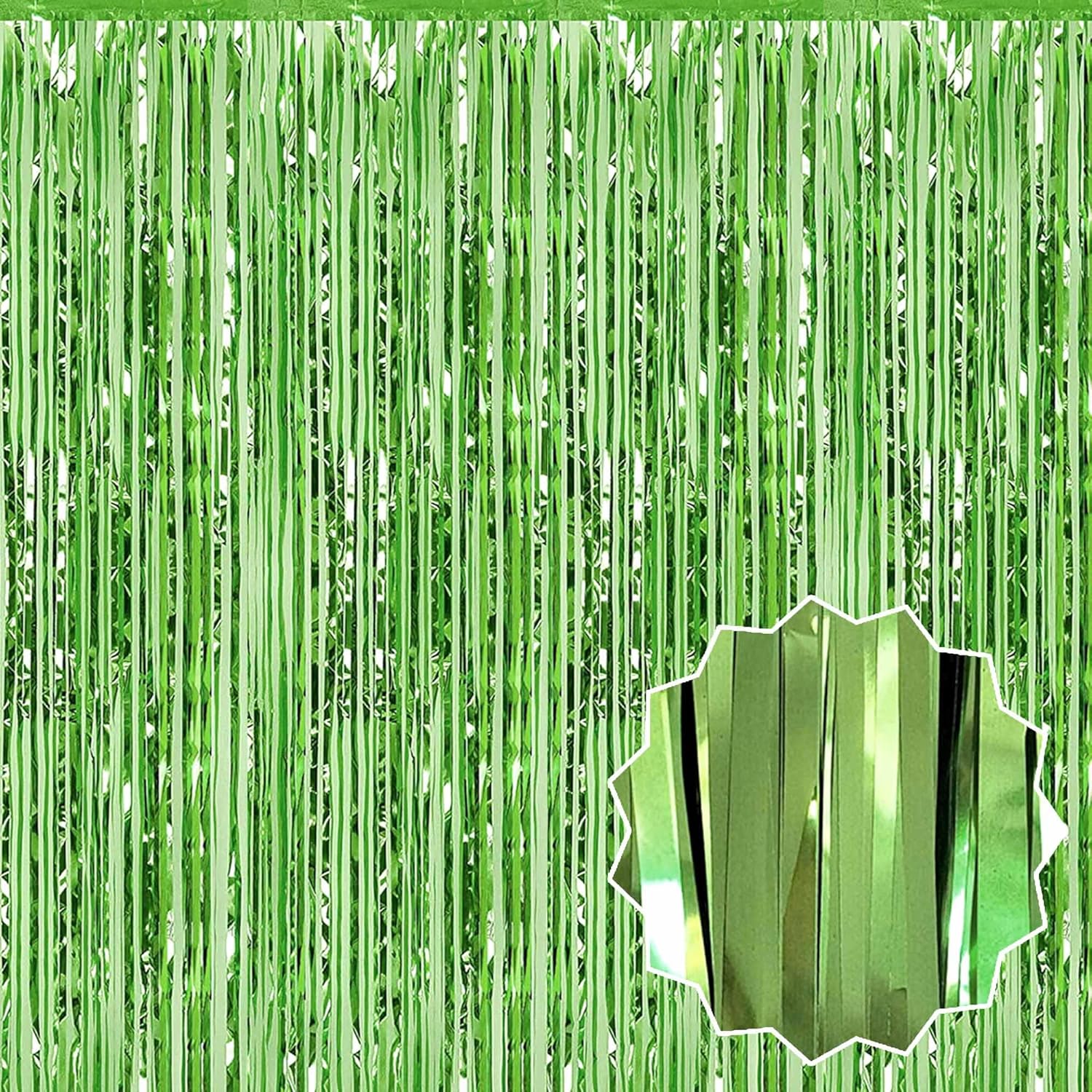 3 Pack Light Green Foil Fringe Curtains Backdrop, 3.28 x 9.8 Ft Metallic Streamers Tinsel Curtains Background for Photo Booth, Birthday, Halloween, Christmas, Thanksgiving, New Year Party Decorations